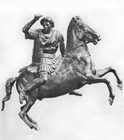 Александр в сражении на своем коне Буцефале. Завоеватель ПерсииАлександр Великий. Царь Македонии (356—323 гг. до н.э.), сын Филиппа II и Олимпиады. Воспитанный Аристотелем, Александр в 336 г. до н.э. получил после убийства его отца власть над Македонией. Весной 334 г. до н.э. он начинает войну против Персии. Перейдя через Геллеспонт, он побеждает персидские войска на берегах Граника. Эта победа открывает ему дорогу к Малой Азии. Тем временем Дарий III мобилизует гигантскую армию, и в ноябре 333 г. обе армии сталкиваются в битве при Иссе. Сражение заканчивается поражением иранцев, и персидский царь бежал. Теперь македонец стал хозяином Малой Азии, ему открыты Сирия и Египет. Отклонив первое предложение Дария о мире, Александр продолжает свое движение вдоль финикийского побережья и затем, после девятимесячной осады захватывает Тир. В начале 332 г. до н.э. он захватывает Египет, где основывает Александрию и наносит визит оракулу Зевса Аммону в оазисе Сива. Возникают первые трения с армией. Александр переходит Евфрат и Тигр, и здесь происходит решающее сражение между персами и греками 1 октября 331 г. до н.э. при Гавгамелах. Александр провозглашен царем Азии, перед ним склоняются сатрапы Вавилона и Суз; часть Персеполя разорена и сожжена. Вскоре царь Дарий был убит бактрийским сатрапом Бессом около Гекатомпила. Александр организовывает похороны Дария и становится законным преемником персидского царя. Введение церемониала персидского двора среди его соотечественников провоцирует оппозицию части его военачальников и воинов, которые страстно желают конца войны и возвращения в Грецию. Александр подавляет эти попытки мятежа и осуждает на смерть Филоту и его отца Пармениона. Затем были захвачены некоторые восточные провинции (Гиркания, Арейя, Дрангиана, Арахозия). В 329 г. до н.э. Александр доходит до Бактрии, где Бесс был захвачен и приговорен к смерти персидским судом. В Самарканде Александр во время попойки наносит удар своему товарищу Клиту. В 327 г. до н.э. он сочетается бра-ком с Роксаной, бактрийской принцессой, и уезжает в Индию. Правитель Таксилы соглашается подчиниться ему, но царь Пор оказывает сопротивление, и с ним происходит битва в 326 г. до н.э. Измотанная армия Александра отказывается следовать за своим командующим за реку Гифазис (Беас), и Александр вынужден повернуть назад. По возвращении в Сузы он организовывает 324 одновременных брака между представителями македонской и иранской аристократии. Возмущение его людей все возрастало, но Александр решает, несмотря ни на что, начать приготовление к походу в Аравию, но умирает, больной и ослабленный в Вавилоне 10 июня 323 г. до н.э. Гюиз Ф. Древняя Персия. М., Вече, 2007, 299-301.