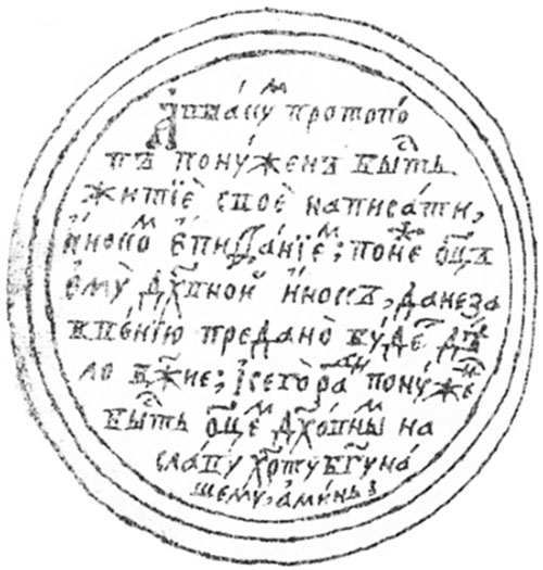 Начала Жития Аввакума со вступительной заметкой Епифания. АВВАКУМ (Аввакум Петров) (1621-1682), глава старообрядчества, идеолог раскола в Православной Церкви, протопоп, писатель. Родился в семье священника. Рано лишившись отца, 19-ти лет женился по указанию матери, найдя в жене верного друга своей многострадальной жизни. Ок. 1640 назначен был священником с. Лопатиц, а затем переведен в г. Юрьевец, откуда должен был спасаться бегством в Москву, вследствие озлобления прихожан и местных властей за резкие обличения разных пороков. В Москве, благодаря своим друзьям, царскому духовнику Стефану Вонифатьеву и протопопу Казанского собора Иоанну Неронову, Аввакум привлечен был к участию в исправлении богослужебных книг, предпринятом патр. Иосифом и состоявшем в сличении их с более древними старопечатными славянскими оригиналами. С 1652, по смерти Иосифа, дело книжного исправления продолжено было патр. Никоном, но по греческим подлинникам, и прежние справщики, в том числе и Аввакум, не знавшие греческого языка, были устранены. Новое исправление вызвало оппозицию со стороны крайних приверженцев буквы обряда, которые стали видеть в нем посягательство на чистоту древней веры и благочестия. Обладая редкой энергией и фанатическим задором и будучи упорным приверженцем старины, Аввакум первый выступил с самым решительным протестом, которого не прекращал до конца своей жизни, несмотря на энергичные преследования сначала со стороны Никона, а затем вообще светских и духовных властей. Уже в сентябре 1653 Аввакум брошен был в подвал Андрониевского монастыря, сослан в Тобольск, но так как и здесь не переставал “ревностно бранить ересь Никонову”, то переведен был в Енисейск, а затем отдан под начало строгому воеводе Афанасию Пашкову, имевшему поручение завоевать Даурию (Забайкальская обл.). Шесть лет провел Аввакум в Даурской земле, доходя до Нерчинска, Шилки и Амура, причем за обличения действий воеводы неоднократно подвергался жестоким лишениям и истязаниям. В 1663 Аввакуму позволено было возвратиться в Москву, но через год, вследствие челобитной, поданной царю Алексею Михайловичу, в которой обличалась в ереси вся Русская Церковь, сослан был в Мезень, где пробыл около полутора лет. В 1666 Аввакум возвращен был опять в Москву, где на проходившем в это время Соборе его пытались заставить отказаться от поднятой им оппозиции; но Аввакум остался непреклонен и в 1667 вместе с сообщниками Лазарем-попом и Феодором-дьяком сослан был в Пустозерский острог на Печоре. После четырнадцатилетнего, полного суровых лишений заключения, во время которого Аввакум все еще не переставал поучать единомышленников через послания, вследствие резкого письма царю Феодору Алексеевичу, в котором поносил всю Русскую Церковь и хулил царский дом, приговорен был вместе с сообщниками к сожжению. С. Ю.