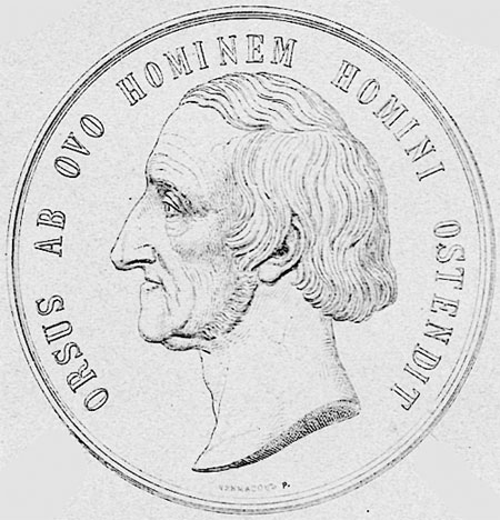 Медаль премии им. К. Бэра. Надпись на медали: БЭР (Baer) Карл Эрнст (Карл Максимович) (29 февраля 1792, Пип, Эстония — 28 ноября 1876, Дерпт, ныне Тарту, Эстония) — натуралист и философ. Окончил медицинский факультет университета в Дерпте (1814), в 1817—34 преподавал в Кёнигсберге, с 1832 — профессор. В 1819—25 разработал основы естественной системы животных и высказал мысли об их эволюции (работы изданы лишь в 1959). «История развития животных» Бэра (т. 1—2, 1828 — 36) заложила новые основы эмбриологии. В 1834—67 работал в Петербурге (член Петербургской АН с 1826), стал биогеографом, антропологом и провозвестником экологии. Писал по-немецки. Один из основателей Русского географического общества (1848). Бэр открыл, что черты типа появляются в зародыше раньше черт класса, последние же — раньше черт отряда и т. д. (закон Бэра). Развил теорию типов Ж. Кювье, в которой учел общность не только плана строения, но и развития зародыша. Систему животных строил на понятии ядра и периферии (четких и нечетких форм) каждого таксона, опирался при этом не на признаки, а на общее строение («суть вещей», по К. Линнею). Подобно Ч. Дарвину, видел в изменчивости материал для эволюции, но отрицал эволюционную роль конкуренции: полевые данные убедили Бэра (как показала Майе Вальт), что избыточность размножения нужна для устойчивости сообществ и не влечет за собой преимущественного выживания отдельных вариантов. Основным же фактом эволюции Бэр считал «идущую вперед победу духа над материей», сближаясь с толкованием прогресса у Ламарка (упоминать которого Бэр избегал). Сформулировал «закон бережливости» природы: однажды попав в живое вещество, атом остается в жизненном цикле миллионы лет. Бэр глубоко исследовал феномен целесообразности, предложив различать добротное, долговечное (dauerhaft), устремленное к цели (zielstrebig) и соответствующее цели, целесообразное (zweckmassig). Сочинения: Какой взгляд на живую природу правильный. — В кн.: Записки Русского энтомологического общества. СПб., 1861, вып. 1; Избр. работы (Прим. Ю. А. Филипченко). Л., 1924; История развития животных, т. 1—2. Л., 1950—53; Неизданные рукописи. — В кн.: Анналы биологии, т. I. М., 1959; Переписка Карла Бэра по проблемам географии. Л., 1970; Entwicklung und Zielstrebigkeit in derNatur. Stuttg., 1983. Литература: Райков Б. E. Русские биологи-эволюционисты до Дарвина, т. 2. М.—Л., 1951; Он же. Карл Бэр. М.-Л., 1961; Вальт (Реммель) М. Имманентная телеология и телеология всеобщей взаимной полезности в трудах Ч.Дарвина и К. Э. фон Бэра. — В кн.: Ученые записки Тартуского государственного университета. 1974, вып. 324; Она же. Экологические исследования К. Бэра и концепция борьбы за существование. — В кн.: Петербургская Академия наук и Эстония. Таллинн, 1978; Варламов В. Ф. Карл Бэр — испытатель природы. М., 1988; Воейков В. Л. Витализм и биология: на пороге третьего тысячелетия. — «Знание — сила», 1996, № 4. Ю. В. Чайковский Новая философская энциклопедия. В четырех томах. / Ин-т философии РАН. Научно-ред. совет: В.С. Степин, А.А. Гусейнов, Г.Ю. Семигин. М., Мысль, 2010, т. I, А - Д, с. 351.