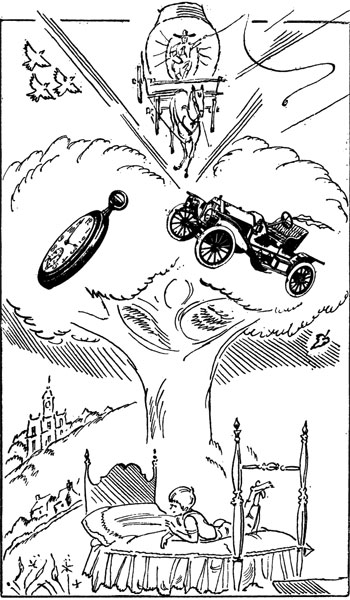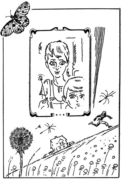Иллюстрация к повести Р. Брэдбери «Вино из одуванчиков». Если вы хотите понять этого писателя, вы должны совершить путешествие в прошлое, к его истокам... Мы попадем в штат Иллинойс, в маленький городок Уокиган, расположенный на берегу одного из Великих озер. Мы окажемся в городке, где деревья подчас смыкали свои кроны, образуя зеленый коридор, перед старым домом на улице, вымощенной красным кирпичом. Неподалеку глубокий овраг, таинственный, загадочный, страшный даже днем. Все в этом городке, включая железнодорожную станцию и горы угля, в воображении мальчишек представлялось волшебной страной тайн и загадок. Мы можем перенестись сначала в 1920 год, август месяц. У Леонарда Сполдинга Брэдбери, предки которого приехали в Америку из Англии в 1630 году, и у Эстер Марии Моберг, в замужестве Брэдбери, родился сын Рэй Дуглас — второе имя, [406] Дуглас — ему дали в честь популярного тогда актера Дугласа Фэрбенкса. Потом мы можем перенестись в теплый летний вечер 1925 года и увидеть на темнеющей в июльских сумерках лужайке маленького Рэя с дедом. Они запускают красно-белый воздушный шар, и он летит, этот странный движущийся огонь, над сонными, домишками ввысь, к звездам, а старик и мальчик провожают его взглядом и долго-долго смотрят в звездную бездну. Маленький Рэй отчетливо помнил события своей жизни с трех лет. Но особенно хорошо ему запомнился день, когда соседская девочка принесла научно-фантастический журнал «Удивительные истории», основанный Хьюго Гернсбеком. И еще — три блаженные недели зимой 1927/28 года, когда он был болен коклюшем и мать долгими зимними вечерами читала ему при свете свечей рассказы Эдгара По. В восемь лет Рэй окончательно и бесповоротно решил посвятить жизнь фантастике. Кто знает, отчего это произошло? Быть может, в нем заговорила кровь прапрапрабабушки Мэри Брэдбери, по семейному преданшо, сожженной на костре во врем» знаменитого Саяемского процесса над ведьмами в 1692 поду. Быть может, это было влияние матери, страстной любительницы чтения.