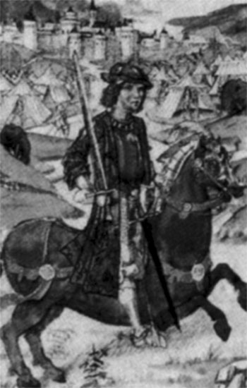 Карл Смелый. С миниатюры XV века. Карл Смелый (Charles le Téméraire), граф Шароле (10.XI.1433 - 5.I.1477), - бургундский герцог с 1467 года. Как фактический глава "Лиги общественного блага", Карл Смелый был наиболее опасным и могущественным врагом Людовика XI, осуществлявшего политику объединения Франции. Карл Смелый боролся за политическую независимость Бургундского герцогства и его расширение, в частности за счет земель французского короля (в 1465 году Людовик XI был вынужден отдать Карлу Смелому города по Сомме). Стремясь найти поддержку у Англии, женился на сестре Эдуарда IV - Маргарите. Неоднократно (1452-1453, 1467, 1468 годы) подавлял восстания городов в Нидерландах, входивших в состав Бургундского герцогства. Стремился овладеть Эльзасом и Лотарингией (см. Бургундские войны 1474-1477 годов). Однако, благодаря дипломатическим переговорам и подкупам Людовика XI, Карл Смелый оказался изолированным от своих союзников. В борьбе против Швейцарии и Лотарингии, тайно поддерживаемых Францией, Карл Смелый был предан наемниками, подкупленными французским королем, и погиб в битве при Нанси. Советская историческая энциклопедия. В 16 томах. — М.: Советская энциклопедия. 1973—1982. Том 7. КАРАКЕЕВ - КОШАКЕР. 1965.