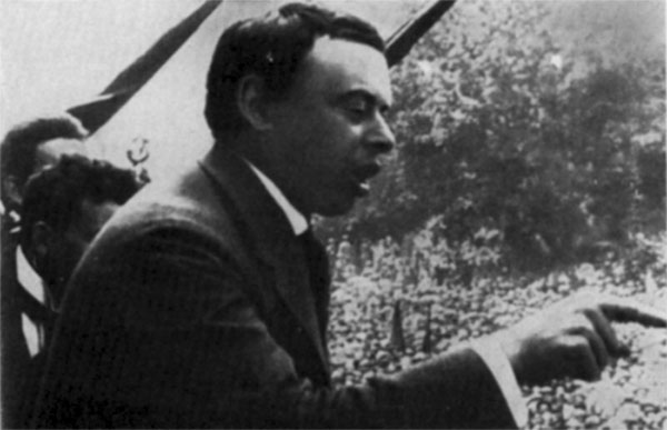 Бела Кун в 1919 году. Выступление на митинге. Международный палачБела Кун (1886-1939) - венгерский коммунистический лидер. Родился в Трансильвании, в семье сельского писаря еврея. В гимназии увлекся революционными идеями. С 1902 г. - член социал-демократической партии Венгрии. Поступил на юридический факультет Коложварского университета. За организацию беспорядков, которые привели к человеческим жертвам, был приговорен судом к тюремному заключению. После освобождения руководил крайне левым крылом социал-демократов горнодобывающего района Венгрии - Жильвельда. В Первую мировую войну воевал против России в рядах австро-венгерской армии. В 1916 г. попал в плен и был отправлен в Томск, где вел среди русских военных революционную пропаганду. В том же году вступил в РСДРП (б). После Февральской революции работал в томском губернском комитете, в большевицкой печати. После Октябрьского переворота сформировал группу командиров из австро-венгерских пленных. Это была самая крупная из групп «интернационалистов-мадьяр», воевавших в Красной армии. Направлен большевиками в Петроград, где редактировал коммунистическую газету на венгерском языке, писал брошюры, призывающие венгров идти в Красную армию, организовал венгерскую партийную школу. Бела Кун помогал большевикам удержать власть в Москве во время восстания левых эсеров в июле 1918 г. (отбил у восставших телеграф и захватил в плен нескольких членов их штаба), т.е. способствовал установлению однопартийной диктатуры. Потом работал в бюро ЦК партии большевиков на Украине. Осенью 1918 г. его откомандировали на Уральский фронт, а в конце того же года - в Венгрию, где он организовал коммунистическую партию. В марте 1919 г. эта партия захватила власть и объявила страну Венгерской Советской республикой. Под руководством Куна было создано правительство, в котором он стал народным комиссаром по иностранным и военным делам. Фактически Кун руководил всей политикой нового государства, стал организатором захлестнувшего страну красного террора, который привел в ужас Европу. Террору положили конец армии Франции и Румынии, освободившие Венгрию от большевиков в августе 1919 г. Куну пришлось вернуться в советскую Россию. В октябре 1920 г. он был назначен членом Реввоенсовета Южного фронта. После ухода войск Русской Армии генерала П.Н. Врангеля из Крыма Бела Кун вместе с секретарем Крымского обкома Розалией Землячкой организовал на полуострове невиданный террор. Под их руководством без счета расстреливались солдаты и офицеры Русской Армии, которые остались на родине, поверив в объявленную большевиками амнистию; беженцы из советской России, которые не захотели или не смогли эвакуироваться с белыми; местные представители деловой, интеллектуальной, культурной элиты общества; представители бывших привилегированных классов, включая стариков, женщин и детей. За 1920-1922 гг. в Крыму было уничтожено, по разным источникам, от 50 до 100 тысяч человек. Так венгерский коммунист выполнил приказ Кремля: «Вымести Крым железной метлой». С 1921 г. Бела Кун работал в Исполкоме и Президиуме Коминтерна, был инициатором ряда попыток «экспорта революции» из России. Одной из таких попыток (Германия, 1921) он руководил лично. В мае 1921 - апреле 1923 г. занимал высокие посты на Урале, затем участвовал в создании Российского Коммунистического Союза Моло
