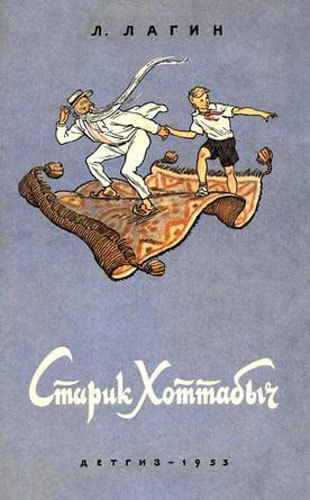 Обложка издания «Старик Хоттабыч» 1953 года. Лагин (настоящая фамилия Гинзбург) Лазарь Иосифович [21.10(4.11).1903, Витебск — 16.6.1979, Москва?] — прозаик. Окончил Московский институт народного хозяйства. Учился в Институте красной профессуры (Москва). Начало творчества — стихи, фельетоны, публиковавшиеся в комсомольской печати с 1921. Сотрудничал в газете «Правда» и журнал «Крокодил». В годы Великой Отечественной войны принимал участие в боевых действиях Дунайской военной флотилии в Николаеве, Одессе, Херсоне. Затем назначен писателем Политуправления Черноморского флота, сочинял листовки, писал рассказы, фельетоны, истории кораблей. Награжден орденом Отечественной войны 2-й степени и медалями. События Великой Отечественной войны нашли отражение в рассказе «Дом с привидениями» (1943), в повести «Броненосец "Анюта"» (другое название — «Три черноморца», 1945). Герои повести, три моряка из Севастополя, пытаются на старом суденышке уйти от немцев. Писателю удалось соединить черты приключенческой литературы (занимательность, благополучный финал), героику и правдивые детали военной эпохи. В 1953 Лагин получил официальное уведомление о присуждении Сталинской премии за роман «Остров Разочарования», но затем присуждение было отменено. Первое значительное произведение — «Эликсир сатаны» (1934). Популярность писателю принесла повесть-сказка «Старик Хоттабыч» (1938, отдельным изданий — 1940). Здесь отчетливо проявились характерные черты прозы Лагин: интересный сюжет, насыщенный событиями, неожиданный ракурс изображения, смешение реальной жизни, быта с причудливыми фантастическими элементами. Старик Хоттабыч — «небытовой персонаж в бытовой обстановке». Это позволяет неожиданно со-и противопоставить разные эпохи, культуры, мечту и действительность. Главное в книге — приятие и утверждение современности. В авторском предисловии к повести говорится: «По понятию джиннов из старинных волшебных сказок и тех, чьи желания они выполняли, это ("драгоценные сундуки". — Н.Д.) и было самое полное счастье, о котором только и можно было мечтать. <...> Ну а что, если бы такой джинн да вдруг попал в нашу страну, где совсем другие представления о счастье и справедливости, где власть богачей давно и навсегда уничтожена и где только честный труд приносит человеку счастье, почет и славу? Я старался вообразить, что получилось бы, если бы джинна спас из заточения в сосуде самый обыкновенный советский мальчик, такой, каких миллионы в нашей счастливой советской стране». В наивной попытке старика Хоттабыча одарить своего спасителя Вольку Костылькова можно увидеть сходство с действиями другого знаменитого персонажа — Дон Кихота. Ему не хватает чувства реальности, он не замечает, как смешон для окружающих. Лагин — мастер политического гротеска, создатель нового жанра — антиимпериалистического романа-памфлета. Соединение фантастики и сатиры восходит к традиции Свифта, Вольтера, Салтыкова-Щедрина, Маяковского. Жанр оказался востребованным в эпоху «холодной войны». Основной задачей его было сравнение двух общественных и политических систем (социализма и капитализма), обличение буржуазных свобод и утверждение первенства социализма. К таким произведениям можно отнести «Патент АВ», «Остров Разочарования», «Трагический астероид», «Белокурая бестия», «Майор Велл Эндъю», «Съеденны