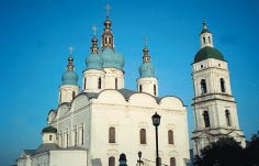 ...День 26 октября 1582 г., когда разбиты были силы Кучума, поворотный пункт в истории «страны мрака», как называли земли за Уралом в Европе. А крепость Тобольск, построенная в 1587 г., вскоре стала столицей огромного, но малолюдного края, освоенного вплоть до Тихого океана всего за 60 лет первопроходцами — казаками, стрельцами, детьми боярскими, ставшими здесь и первыми земледельцами. В Тобольске и вправду приезжему сразу бросается в глаза столичный размах — широкие улицы, солидные дома. Москве и Питеру он недаром когда-то ровней считался. — А у нас всё как в Москве, — говорят тоболяки. — Есть и свой кремль, построенный по проекту гениального нашего земляка Семена Ремезова, а перед кремлем, как и положено — Красная площадь. Но она Красная не потому, что красивая, а потому что при Советской власти был устроен под стенами кремля стадион, который назвали в духе времени: «Красный спорт», так и площадь близ него «покраснела». ...Когда-то была у тобольского губернатора и своя тронная зала. В ней он иностранных послов встречал. Для проведения торжественных мероприятий имелась в сибирской столице и своя плац-парадная площадь. Сдается, что падению величия Тобольска, способствовало отсутствие железной дороги. Обошли почему-то город при строительстве Транссибирской магистрали ее проектанты в 90-е годы XIX в. Пришли они сюда лишь в эпоху «развитого социализма», но было поздно: в 1918 г. у города отняли даже статус губернского, переведя центр губернии в Тюмень. Зато местные патриоты уверяют, что за границей сами видели крошечный глобус, на котором территория России традиционно окрашена в красный цвет и отмечены на ней лишь три города: Москва, Петербург, Тобольск.