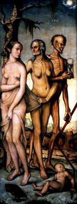 ART RESOURCE/Giraudon Бальдунг Ганс (Baldung, Hans) (1484–1545), немецкий график, живописец и создатель витражей. Бальдунг родился близ Страсбурга в 1484 и, возможно, ок. 1503 учился у А.Дюрера. В 1512–1517 жил во Фрайбурге, где написал алтарь для городского собора, который считается его лучшей работой. Остаток жизни провел в Страсбурге, где стал придворным художником епископа и членом городского совета. Гравюра Шабаш ведьм (1510), с драматическими контрастами света и тени, демонстрирует интерес художника к магии и его стремление передать эмоциональную атмосферу происходящего. Проникнутая совершенно иным настроением картина Рождество Христово (1520, Мюнхен, Старая Пинакотека) – очаровательная ночная сцена, в которой люди и животные поклоняются младенцу Христу среди озаренных чудесным светом руин. Серия картин с изображением обнаженных фигур (Адам и Ева, Юдифь, Венера; 1925), изображенных в полный рост, напоминает произведения мастеров итальянского Возрождения, но обладает, однако, присущей североевропейскому искусству жесткостью. Морализирование Бальдунга на тему бренности человеческой плоти нашло выражение в его увлечении сюжетом «девушка и смерть». В одной из его версий (1517, Базель, Публичное художественное собрание) отвратительная скелетообразная фигура смерти вонзает зубы в пухлую щеку молодой женщины. Картина Геркулес и Антей (Кассель, Художественная галерея) показывает, насколько трактовка Бальдунгом античного мифа далека от его понимания в искусстве итальянского Ренессанса. Утрирование анатомической структуры фигур – черта антиклассическая; используя элементы гротеска, мастер наделяет образы мощной экспрессией. Несмотря на реалистическую трактовку отдельных деталей и пространственное построение композиции, произведения Бальдунга кажутся принадлежащими миру позднего Средневековья, миру легенд и аллегорий. Использованы материалы энциклопедии "Мир вокруг нас". Литература:Либман М.Я. Дюрер и его эпоха. М., 1972