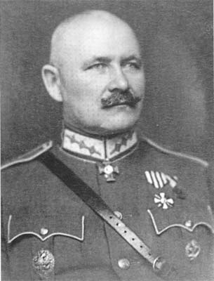 Генерал-майор Р.К. Бангерский, фото конца 20-х годов В белом движенииБангерский (Бангерскис) Рудольф Карлович (21.07.1878-25.02.1958). Латыш, родился в Лифляндской губернии (Латвия), лютеранин. Полковник (12.1916). Генерал-майор (05.02.1919). Генерал-лейтенант (06.1920). Полный генерал Латвийской армии (18.11.1925). Генерал-лейтенант войск СС, 09.03.1943. Вольноопределяющийся Рижского учебного унтер-офицерского батальона, 10.1895 — 07.1899. Окончил Юнкерское училище в Санкт-Петербурге, 1899 —1901 и 2 класса Николаевской академии Генерального штаба, 1912 — 1914. В Русской армии с 1901 г., прапорщик и подпоручик в 93-м пехотном Иркутском полку. Участник русско-японской войны 1904 — 1905. Участник Первой Мировой войны: офицер в штабе 31-го армейского корпуса, командир 1-го Усть-Двинского латышского батальона, 12.08.1915 — 12.1916. Командир (ВРИД) 2-го Рижского и 4-го Видземского полков, затем начальник штаба Латышской стрелковой дивизии; 12.1916 — 02.1917. Командир 17-го Сибирского стрелкового полка, 25.01.1917-03.03.1918. В Белом движении: в штабе гарнизона Екатеринбурга; с 06.08.1918 начальник штаба 7-й Уральской дивизии горных стрелков, 29.06.1918-05.10.1918. Командир 12-й Уральской стрелковой дивизии (сформированной из пяти намеченных к формированию решением КОМУЧа), 05.10.1918— 18.08.1919. Командующий Уфимской группой войск, 18.08.1919 — 03.1920. После отступления и окончания Ледяного похода с остатками своих войск прибыл в Читу (Забайкалье), где был назначен командиром Уфимской стрелковой дивизии 3-го Сибирского корпуса генерала Молчанова (бывшая Уфимская группа) в Дальневосточной (Белой) армии атамана генерала Семенова, 03 — 12.1920. После того как остатки колчаковско-каппелевских войск в Дальневосточной армии (Забайкалье) окончательно были разбиты в боях с наступавшей Красной Армией (18.10—19.11.1920), генерал Бангерский в одиночку (с большими трудностями и приключениями, через пустыню в Монголии) добирался до Харбина, перейдя в Маньчжурии границу с Китаем. В эмиграции с 12.1920: Харбин, Маньчжурия (Китай). Через Владивосток, Японию и Корею прибыл в Китай; остановился в Шанхае, 03—07.1921. Выехал в Европу из Шанхая 31.07.1921, отплыв на пароходе «Яматомару». 10.11.1921 прибыл в Латвию. 29.02.1924 призван в латвийскую армию. Командир 1-й Курземской дивизии, 02 — 12.1924. Военный министр правительства Латвии, 24.12.1924—25.12.1925 и 12.1926—12.1928. Начальник штаба латвийской армии, 1926. Затем командовал 4-й Земгальской и 3-й Латвийской дивизиями, занимал пост начальника Высших военных курсов, 09.1929-03.1937. С 16.03.1937 в отставке.