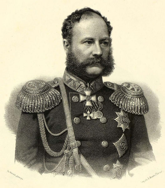 Барятинский Александр Иванович (1815-1879), князь, - генерал-фельдмаршал русской армии. В 1835 году офицером участвовал в боях с кавказскими горцами, восставшими против царского колониализма. В 1836-1845 годы Барятинский - в свите наследника престола (будущего Александра II), с которым совершил длительное путешествие по Европе. С 1845 года вновь принимал участие в войне против горцев. В 1853-1854 годы - начальник штаба Кавказского корпуса, участник сражения при Кюрюк-Дара (1854). С 1856 года Барятинский - командующий войсками и наместник царя на Кавказе, организатор подавления национально-освободительной борьбы горцев Дагестана. Разработал новый стратегический план, состоявший в замене отдельных набегов на горские селения систематическим продвижением от рубежа к рубежу с прочным закреплением занятых территорий. Сжимая кольцо окружения, сломил сопротивление отрядов Шамиля и в 1859 году взял его в плен. В 1862 году вышел в отставку и был назначен членом Государственного совета. Барятинский выступал противником военных реформ, проводившихся Д. А. Милютиным. Советская историческая энциклопедия. В 16 томах. — М.: Советская энциклопедия. 1973—1982. Том 2. БААЛ - ВАШИНГТОН. 1962. Литература: Зиссерман А. Л., Фельдмаршал кн. Александр Иванович Барятинский, т. 1-3, М., 1889-91. Барятинский, Александр Иванович (02.05.1815, с. Ивановское Льговского уезда Курской губ. — 25.02.1879, Женева) — российский военный и государственный деятель, князь, генерал-фельдмаршал. Службу начал в 1831 юнкером в кавалергардском полку. В марте 1835 командирован на Кавказ, где за участие в боях против горцев награжден золотой саблей. С 1836 состоял при будущем императоре Александре II. Дальнейшая карьера связана с Кавказом. С 1847 — командующий Кабардинского егерского полка, с 1850 — Кавказской резервной гренадерской бригады, с 1851 — 20-й пехотной дивизии и и. о. начальника левого фланга Кавказской линии. В ходе Крымской войны с июля 1853 — и. о. начальника Главного штаба на Кавказе, с октября того же года — командующий корпусом. С января 1856 — командующий гвардейским резервным пехотным корпусом, с июля — главнокомандующий Отдельным Кавказским корпусом и и. о. Кавказского наместника. За взятие под Гунибом в плен Шамиля (в июле 1859) и разгром его основных сил отмечен орденами Св. Георгия 2-й степени и Св. Андрея Первозванного с мечами. В последующем занимался военно-административным устройством края, руководил подавлением выступлений горцев и волнений казаков. В декабре 1862 вышел в отставку с оставлением членства в Госсовете. Выступил против военных реформ 1860—1870-х. В начале Русско-турецкой войны 1877—1878 (см. Русско-турецкие войны XVII—XIX вв.) император отклонил кандидатуру Б. на пост главнокомандующего русской армии. В. Л. Телицын. Цитируется по изд.: Российская историческая энциклопедия. Т. 2. М., 2015, с. 356-357. Сочинения: Письма князя А. И. Барятинского к Н. И. Евдокимову // Русская старина. 1886. Т. 52. № 10. Литература: Ковалевский Н. Ф. История государства Российского. Жизнеописания знаменитых военных деятелей XVIII — начала XX века. М. 1997; Коломиец А. Александр Иванович Барятинский // Родина. 1994. № 3—4; Муханов В. М. Покоритель Кавказа князь А. И. Барятинский. М., 2007; Род князей Барятинских: исторический очерк. Л., 1990; Романовский Д. И. Генерал-фельдмаршал князь А. И. Барятинский и Кавказская война. СПб, 1881. Барятинский Александр Иванович (1815-1879) Генерал-фельдм