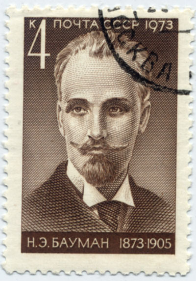 Из советской энциклопедии:БАУМАН Николай Эрнестович [17(29).5.1873, Казань, — 18(31).10.1905, Москва], профессиональный революционер, деятель большевистской партии. Родился в семье ремесленника-столяра. Революционную деятельность начал в Казанском ветеринарном институте который окончил в 1895. В 1896—1897 член Петербургского «Союза борьбы за освобождение рабочего класса». Неоднократно подвергался арестам и ссылкам. В 1899 бежал из ссылки в Швейцарию, где стал одним из ближайших помощников В. И. Ленина в создании газеты «Искра». В декабре 1901 по поручению В. И. Ленина приехал в Москву, стал членом Московского комитета РСДРП. С 1903 возглавлял Московскую организацию большевиков и Северное бюро ЦК партии. Делегат 2-го съезда РСДРП от Московской партийной организации. В июне 1904 арестован и 16 мес. находился в Таганской тюрьме. После освобождения включился в активную революц. работу. 18 окт. 1905 был убит черносотенцем. Похороны Б. превратились в мощную политич. демонстрацию, фактически ставшую смотром боевых сил моек, пролетариата и сыгравшую большую роль в подъёме революц. борьбы в Москве и перерастании её в вооруж. восстание. В некрологе, помещенном в газ. «Пролетарий», В. И. Ленин писал: «Пусть послужат почести, оказанные восставшим народом его праху, залогом полной победы восстания и полного уничтожения проклятого царизма!» (Полн. собр. соч. Изд. 5-е. Т. 12, с. 37). Именем Б. названы район, площадь и улица в Москве, Моск. высшее технич. училище. Использованы материалы Советской военной энциклопедии в 8-и томах, т. 1 БольшевикБауман Николай Эрнестович (1873, Казань - 1905, Москва) - большевик. Родился в семье владельца обойной и столярной мастерской. Учился во 2-й Казанской гимназии, из-7-го класса которой ушел, не поладив с преподавателями. В 1891-1895 был студентом Казанского ветеринарного института. В годы учебы увлекся нелегальной народнической и марксистской литературой, участвовал в работе подпольных рабочих кружков. С дипломом ветеринарного врача Бауман отправился на работу в с. Новые Бурасы, Саратовской губ., мечтая заниматься там рев. пропагандой, но, попав в поле зрения полиции и стремясь к широкой рев. деятельности, осенью 1896 он уехал в Петербург. В 1896-1897 работал в Петербург. "Союзе борьбы за освобождение рабочего класса". В 1897 был арестован и заключен в Петропавловскую крепость, где содержался в одиночке 22 мес. В 1899 был сослан в Вятскую губ., откуда в том. же году бежал за границу. В г. Цюрих в 1900 познакомился с В.И. Лениным. Б. стал активным участником подготовки издания, а затем транспортировки газ. "Искра". В конце 1901 вернулся в Россию. Работал в Московском комитете РСДРП. Был арестован, но бежал. В 1903 он - делегат II съезда РСДРП от московской организации, по всем обсуждавшимся вопросам поддержавший Ленина. Товарищ Б. вспоминал: "Он был прирожденным, твердокаменным большевиком, каковым он и стал на другой день после раскола партии". Прозванный за легкость перехода границы "Грачом", Б. в 1903 по поручению Ленина вернулся в Россию для борьбы с меньшевиками и организации большевистской подпольной типографии. В 1904 был арестован, а в 1905 освобожден из тюрьмы. Убит Михайлиным во время демонстрации, организованной МК РСДРП. Похороны Б. превратились в грандиозную демонстрацию, использованную большевиками для создания боевых дружин и подготовки восстания. Использованы материалы кн.: Шикм