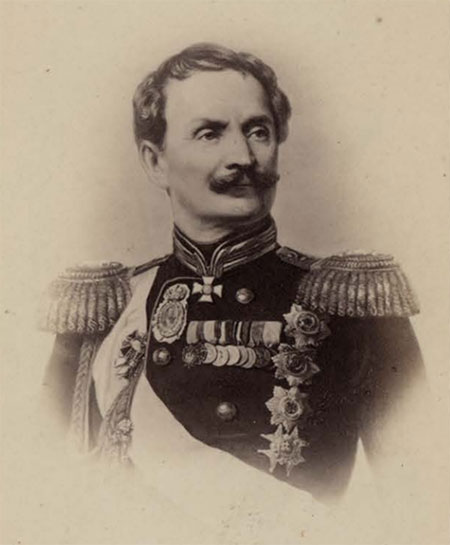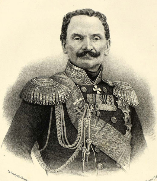 Берг Федор Федорович (Фридрих-Вильгельм-Ремберт) (1793-1874) С детских лет родители, небогатые дворяне Лифляндской губернии, готовили сына к гражданской службе, и по их настоянию молодой Берг поступил в Дерптский университет, но начавшаяся война 1812 г. изменила его планы и Федор определился юнкером в Либавский пехотный полк, входивший в состав Рижского корпуса, который действовал на северо-западном направлении. Благодаря своему образованию и знанию языков он, еще не имея офицерского звания, был прикомандирован к квартирмейстерской части, т. е., говоря современным языком, перешел на штабную работу и должен был состоять при генерале Эссене. Уже в . августе Берг был произведен в подпоручики с переводом в свиту императора по квартирмейстерской части. Отличился в делах при Даненкирхене, Гросенау и Цемайлене. Участвовал в заграничных походах русской армии 1813—1814 гг. Состоял при партизанских отрядах генерал-адъютанта П. В. Кутузова и генерал-майора Тетенборна, действовавших в северной части Пруссии. За время с 10 августа по 5 сентября 1813 г. " участвовал в 14 сражениях, в «битве народов» под Лейпцигом и преследовании неприятеля до Рейна. В 1814 г. в чине штабс-капитана был переведен в гвардейский генеральный штаб и сражался под Бриенном, Ножаном, Бар-сюр-Обом, Арсисом, Фер-Шампенуазом, Парижем. Досле окончания войны Берг путешествовал по Европе, выполняя функции тайного наблюдателя за движением карбонариев в Неаполе. В 1820—1822 гг. состоял на дипломатической службе при миссиях в Мюнхене и Риме. За это время он изучил поля сражений в Италии и Швейцарии и составил военно-статистическое описание Турции. В 1823 и 1825 гг. возглавлял экспедиции в Закаспийский край, во время которых собрал материал для военно-топографического описания и составления карты района между Каспийским и Аральским морями. С 1826 г. — советник посольства в Турции. С началом русско-турецкой войны 1828—1829 гг. Берг был назначен генерал-квартирмейстером 2-й армии, командовал войсками, прикрывавшими осадные работы у турецкой крепости Силистрия. Без осадной артиллерии овладеть этой сильной крепостью оказалось невозможно, но когда орудия прибыли, выяснилась огромная нехватка боеприпасов. Осаду Силистрии 27 октября пришлось снять. В эти же годы Берг руководил съемками северо-восточной части Болгарин II Балканских гор, а также некоторых районов Румынии. Спустя два года после окончания турецкой войны Берг участвовал в подавлении Польского восстания 1830—1831 гг. В сражении при Остроленке с Екатеринославским гренадерским и 3-м карабинерным полками он находился в голове передовой колонны графа Палена. Подойдя к городу, переправился под сильным картечным огнем через реку Нарев и в течение десяти часов удерживал занятую позицию, отразив шесть неприятельских атак. Во время штурма Варшавы Берг дважды направлялся парламентером к командованию польских войск и склонил руководителей повстанцев Круковецкого и графа Малаховского к сдаче. После польской кампании Берг в чине генерал-лейтенанта и звании генерал-адъютанта был назначен генерал-квартирмейстером действующей армии при графе Паскевиче. С 1843 г. — генерал-квартирмейстер Главного штаба. Под руководством Берга с 1845 г. составлялась трехверстная военно-топографическая карта России, велись работы по военно-статистическому описанию губерний; при н