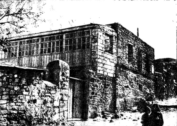 Рис. 2. Дом, в котором жил в Дербенте А. А. Бестужев-Марлинский. На доме мемориальная доска с барельефом Бестужева и надписью: «Здесь в 1830—1834 гг., находясь в ссылке, жил писатель, декабрист, А. А. Бестужев-Марлинский». (Застекленная галерея с передней каменной стеной н окном является современной пристройкой.)