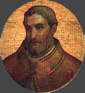 Фото с сайта http://monarchy.nm.ru/ Бонифаций VI, 896.IV—896.IV Бонифаций VI, Папа Римский (Bonifacius Sextus). Происхождение: Рим (Италия). Годы жизни: ? - 19 апреля 896. Годы понтификата: 4 - 19 апреля 896. Бонифаций был избран папой в обстановке хаоса, вызванного борьбой за власть между сторонниками герцогов Сполето и сторонниками Каролингов. Его понтификат длился всего 15 дней. По одним сведениям он умер от подагры, по другим был убит сторонниками герцогов Сполето, чтобы расчистить путь на престол их кандидату Стефану VI. В 898 г. Иоанн IХ объявил выборы Бонифация недействительными. Использованы материалы сайта http://monarchy.nm.ru/ Далее читайте:История папства (хронологическая таблица). Папы римские (по векам в хронологическом порядке): | I-IV | V-IX | X-XIV | XV-XIX | XIX-XXI | Ордена монашеские и ереси (католические)