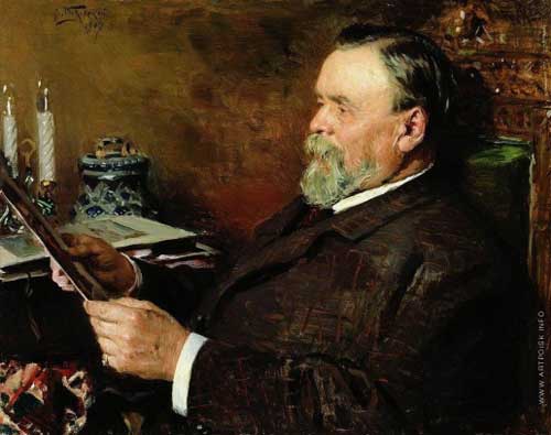 В.Е.Маковский. «Любитель живописи». 1907. Цветков Иван Евменьевич (1845-1917), русский предприниматель и коллекционер. С 1880-х собирал рисунки и картины русских художников. Основал художественную галерею, которую в 1909 подарил Москве. + + +