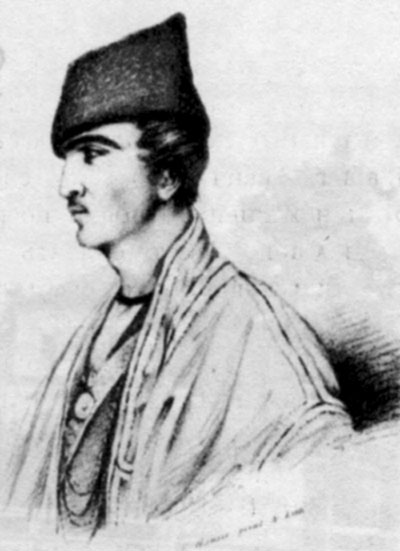 Фазиль-хан Шейда. Художник Э. Гаузер. 1829 Фазиль-хан Шейда (1783 (1784) — 1852), учитель детей персидского наследного принца Аббаса-Мирзы. Персидский поэт. С конца 1830-х годов русский подданный, преподаватель восточных языков в Тифлисе. Сопровождал Хозрева-Мирзу (сына Аббаса-Мирзы), посланного Фет-Али шахом в Петербург для принесения извинений в связи с гибелью Грибоедова и всей русской миссии. О встрече с Фазиль-ханом 24 марта 1829 года на Военно-Грузинской дороге около селения Казбек Пушкин рассказал в первой главе «Путешествия в Арзрум». По желанию поэта конвойный офицер представил его Фазиль-хану. «Я, с помощью переводчика, начал было высокопарное восточное приветствие; но как же мне стало совестно, когда Фазиль-хан отвечал на мою неуместную затейливость простою, умной учтивостью порядочного человека! Он надеялся увидеть меня в Петербурге; он жалел, что знакомство наше будет непродолжительно и проч.». Фазиль-хану посвящено стихотворение Пушкина, оставшееся неоконченным: Благословен твой подвиг новый, Благословен твой подвиг новый, А в черновом наброске: Благословен и день и час, Коби, 25 мая Л.А. Черейский. Современники Пушкина. Документальные очерки. М., 1999, с. 223-224. Далее читайте:Всё об Иране и персах (справочник). Исторические лица Ирана (биографический справочник). Иран (подборка статей по истории страны).