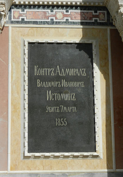 Из энциклопедии:Истомин Владимир Иванович [1809, Пензенская губ., ныне Пензенская обл.,—7(19). 3.1855, Севастополь], русский контр-адмирал (1853), герой Севастопольской обороны 1854— 1855. В 1827 окончил Мор. кадетский корпус. Большое влияние на формирование И. как мор. офицера оказала служба на линейном корабле «Азов» под командованием М. П. Лазарева. Ещё будучи гардемарином на этом корабле, И. отличился в Наваринском сражении 1827. Во время рус.-тур. войны 1828—29 участвовал в блокаде Дарданелл, до 1832 продолжал службу в рус. средиземномор. эскадре, затем на Балт. флоте. В 1836 переведён на Черномор, флот, служил на линейном корабле «Варшава», командовал пароходом «Северная звезда», шхуной «Ласточка», корветом «Андромаха» и фрегатом «Кагул». В 1850 назначен ком-ром лин. корабля «Париж», на к-ром участвовал в Синайском морском сражении 1853 во время Крымской войны 1853—56. С началом обороны Севастополя возглавил один из важнейших участков оборонит, линии —4-ю дистанцию, включавшую Малахов курган и прилегающие редуты. При отражении вражеских штурмов проявлял мужество и героизм, находился в самых опасных местах и лич. примером воодушевлял солдат и матросов на выполнение воинского долга. Убит в бою. Похоронен в Севастополе. Использованы материалы Советской военной энциклопедии в 8-ми томах, том 3.