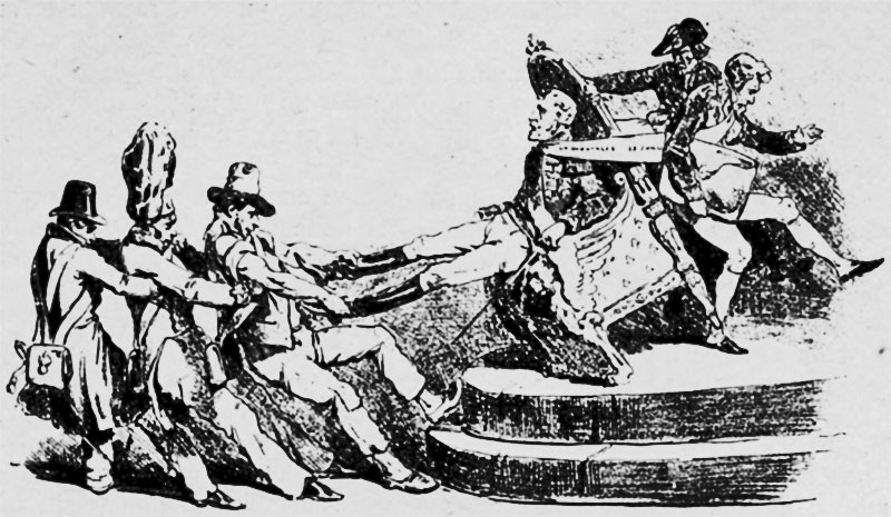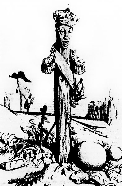«Коронованный столб». Карикатура Декампа на Карла X/ Карл X + + + В молодости Карл проводил время в роскоши и безделье и имел множество любовных приключений. В отличие от старших братьев он был человеком недалеким, но энергичным. В самом начале революции граф Артуа (этот титул был пожалован Карлу при рождении) настаивал на подавлении мятежа самыми решительными мерами, но после взятия Бастилии был вынужден бежать за границу. Карл был непременным организатором всех контрреволюционных военных акций, включая Вандейское восстание 1795 г., однако поражение роялистов заставило его умерить свой пыл. До 1814 г. он жил в Англии. Находясь при смерти, его любовница графиня де Поластрон завещала Карлу изменить образ жизни. Исполняя ее волю, Карл прекратил разгульную жизнь и обратился к Богу. Во время первой реставрации Карл въехал в Париж раньше Людовика XVIII и несколько дней управлял Францией в качестве наместника. Во время "Ста дней" брат направил его в Лион командовать армией, но королевское войско в полном составе перешло на сторону Наполеона, и Карл был вынужден бежать. Во время второй реставрации Карл находился в оппозиции к брату. Он был величествен, элегантен, энергичен и по-рыцарски благороден, но имел ограниченный кругозор и был полон аристократических предрассудков. Он осуждал чрезмерно либеральную политику короля и не скрывал своих ультрароялистских взглядов. Когда Карл взошел на престол в 1824 г., ему было уже 66 лет. Он был полон решимости восстановить во Франции режим, существовавший до 1789 г. Первым делом из армии были уволены 250 наполеоновских генералов, был принят закон "О святотатстве" и закон "О миллиарде", дававший право на компенсацию эмигрантам, пострадавшим в годы революции. В 1829 г. король поставил во главу правительства герцога Полиньяка, которому поручил разработать более радикальные законы. 25 июля 1830 г. появились ордонансы об отмене свободы печати, роспуске палаты депутатов, повышении избирательного ценза и назначении новых выборов в палату. Это привело к началу массовых беспорядков. На следующий день Полиньяк едва не был растерзан манифестантами. 27 июля были закрыты большинство типографий, и возмущенные парижане начали выходить на улицы. 28 июля на улицах появились баррикады. Королевские войска пошли в наступление, но были отброшены к Лувру. Утром 29 июля вооруженная толпа пошла на штурм дворца. Верные королю войска, включая швейцарскую гвардию, бежали. В ночь с 29 на 30 июля король дал согласие на отставку Полиньяка и отмену ордонансов, но было уже поздно. 1 августа Карл назначил герцога Орлеанского наместником королевства, а на следующий день отрекся от престола в пользу внука Генриха Бордосского, после чего отплыл в Англию. Прожив несколько лет в Англии и Шотландии, Карл переселился в Прагу, где его семье была выделена часть дворца в Градчанах. В 1836 г. он решил перебраться в небольшой городок Герц, но в дороге заболел холерой и вскоре по прибытии умер. Использован материал с сайта http://monarchy.nm.ru/