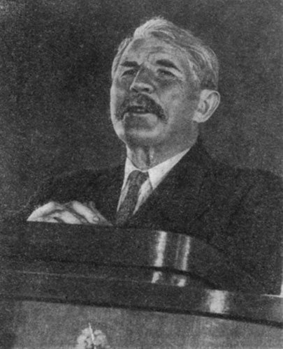 Выступление М. Кашено перед избирателями. 1956 г. Кашен (Cachin), Марсель (20.IX.1869 - 12.11.1958) - деятель французского и международного рабочего движения, один из основателей (1920) и руководителей Французской коммунистической партии (ФКП). Родился в местечке Пемполь (департамент Кот-дю-Нор) в крестьянской семье. Окончил философский факультет университета в городе Бордо, где затем читал курс философии. В 1891-1905 годы - член Рабочей партии, руководимой Ж. Гедом и П. Лафаргом, в 1905-1920 годы - член Французской социалистической партии, принадлежал к ее марксистскому крылу. В 1906-1912 годы Кашен - член центрального руководства социалистической партии, участвовал в работах Амстердамского (1904), Штутгартского (1907) и Базельского (1912) конгрессов 2-го Интернационала, с 1912 года был редактором, а с 1918 года - директором газеты "Юманите". С 1914 года - депутат парламента. В 1917 года после поездки в Россию Кашен выступил в поддержку Советской республики. В 1918 году по инициативе Кашена Национальный совет Французской социалистической партия принял резолюцию, осуждавшую интервенцию против Советской России и призывавшую рабочий класс Франции к защите социалистического государства. В феврале 1920 года съезд Французской социалистической партии, принявший решение о выходе из 2-го Интернационала, делегировал Кашена в Москву для установления контакта с Коммунистическим Интернационалом. В 1920 году Кашен участвовал как делегат от Французской социалистической партии на II конгрессе Коминтерна, где встречался с В. И. Лениным. Присутствовал на заседании Московского совета. Он направил во Францию телеграмму, в которой рекомендовал социалистической партии присоединиться к 3-му Интернационалу. По возвращении во Францию в августе 1920 года Кашен выступал на многочисленных митингах и собраниях, в ходе которых он разъяснял трудящимся значение Октябрьской революции, природу Советской власти, ее первые результаты и ее будущее. Кашен разоблачал оппортунистическое руководителей Французской социалистической партии и призывал к созданию подлинно революционной, марксистской партии. Эта шестимесячная кампания Кашена имела большое значение в создании Коммунистической партии во Франции. В 1920 году съезд социалистической партии в Туре по предложению Кашена принял большинством голосов решение о присоединении к 3-му Интернационалу. Съезд в Туре положил начало Французской коммунистической партии. С 1920 года Кашен - член ЦК и Политбюро ЦК ФКП. В 1924-1943 годы - член Исполкома, член Президиума Исполкома Коминтерна. Участник IV (1922), VI (1928) и VII (1935) конгрессов Коммунистического Интернационала. Неоднократно преследовался за революционную деятельность: в 1923 года был арестован за борьбу против оккупации Рура, в 1926 году приговорен к 2 годам тюрьмы за выступления против войны в Марокко, в 1929 году был арестован по обвинению в "заговоре против французского государства". В 1935 году Кашен был избран членом Сената Франции (первый сенатор-коммунист). На страницах "Юманите", на собраниях и митингах, в парламенте (где Кашен являлся неизменно председателем парламентской группы коммунистов) Кашен призывал французский народ к борьбе против фашистской опасности, за единый рабочий и народный фронт. В период оккупации Франции (июнь 1940 - конец 1944 года) немецко-фашистскими войсками Кашен активно участвовал в Движении Сопротивлен