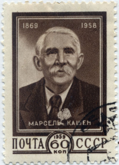 Марсель Кашен выступает на VII конгрессе Коммунистического Интернационала. Кашен (Cachin) Марсель (20.9.1869, Пемполь, - 12.2.1958, Париж), деятель французского и международного рабочего движения. Окончил университет в г. Бордо, после чего в Бордо преподавал философию. В 1891 вступил в Рабочую партию, руководимую Ж. Гедом и П. Лафаргом, с которыми был лично знаком. Возглавлял департаментскую организацию партии и её газету "Сосиалист де ла Жиронд" ("La Socialiste de la Gironde"). В 1904 участник Амстердамского конгресса 2-го Интернационала. В 1905-20 - один из руководителей французской социалистической партии (СФИО). Участник Штутгартского (1907) и Базельского (1912) конгрессов 2-го Интернационала, сторонник марксистского направления во французском рабочем движении. С 1912 редактор газеты "Юманите" ("L'Humanite), где заменил умершего П.Лафарга, с октября 1918 и до конца жизни - её директор. С 1914 (с перерывом в 1933-35) депутат парламента. Посетив Россию весной 1917 и летом 1920, перешёл на коммунистические позиции. Присутствовал на 2-м конгрессе 3-го Интернационала в Москве (1920), где неоднократно встречался с В. И. Лениным. Сыграл ведущую роль в создании Французской компартии (ФКП). После возглавленной Кашеном многомесячной борьбы за присоединение СФИО к Коминтерну турский съезд СФИО (декабрь 1920) принял большинством голосов резолюцию Кашена о создании компартии. Вошёл в состав Руководящего комитета, действовавшего в течение первых 3 лет существования ФКП, а затем был избран в первый состав ЦК и Политбюро ФКП, членом которых являлся до последних дней жизни. Неоднократно подвергался преследованиям и арестам. В 1924-43 К. - член Исполкома, затем член Президиума Исполкома Коминтерна. Участник 4, 6 и 7-го конгрессов Коминтерна. Во время 2-й мировой войны 1939-45 и оккупации Франции (1940-44) участвовал в Движении Сопротивления, находясь на нелегальном положении. После окончания войны предостерегал французский народ от антисоветской политики реакционных сил, выступал против вступления Франции в НАТО и др. агрессивные блоки. В 1957 за многолетнюю деятельность, направленную на укрепление дружбы народов Франции и СССР, награжден орденом Ленина. + + +