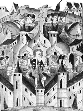 Миниатюра: Свидание св. Киприана с Витовтом и Ягайлой.
