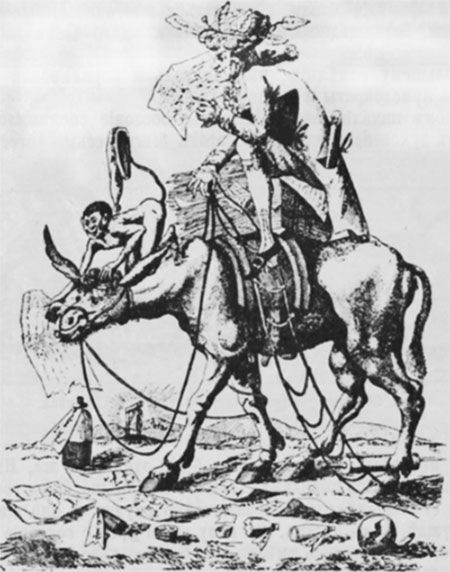 Карикатура на Марата. Ученый и публицистМарат (Marat), Жан Поль (24.V.1743 - 13.VII.1793) - деятель Великой французской революции, ученый и публицист. Родился в городе Будри близ Невшателя (Швейцария) в небогатой семье учителя иностранных языков. 16 лет уехал во Францию, два года был воспитателем в доме негоцианта в Бордо; в 1762-1765 годы занимался естественными и философскими науками в Париже, испытал идейное воздействие просветительской мысли, в особенности Ж. Ж. Руссо и Ш. Л. Монтескьё. В 1765 году переехал в Великобританию, работал там в тех же областях науки, особенно много занимался медициной. Теоретические и экспериментальные занятия медициной Марат совмещал с практикой врача, принесшей ему известность. В 1769 году вышла первая книга Марата "Об одной глазной болезни", вслед за которой на протяжении ряда лет было опубликовано несколько работ Марата по вопросам медицины и физики. В 1775 году Эдинбургский университет присудил Марату ученую степень доктора медицины. В эти же годы Марат работал над большим естественно-философским сочинением "О человеке", вышедшем в 1775 году в Амстердаме и встреченном отрицательно корифеями Просвещения (Вольтер, Д. Дидро) за антиматериалистическую направленность его философской части. Марат, уделяя главное внимание медицине и физике, создавшим ему известность в научном мире Европы, в то же время занимался и политическими проблемами. В 1774 году в Лондоне было опубликовано анонимно на английском языке его первое политическое сочинение "Цепи рабства", трактующее широкие вопросы борьбы с феодально-абсолютистским строем и доказывающее неизбежность революции. Эти передовые общественные идеи были развиты Маратом в изданном в 1780 году в Невштателе его политико-юридическом сочинении "План уголовного законодательства". Таким образом, еще за 15-10 лет до начала Великой французской революции Марат определил свое место на левом крыле французского Просвещения как последовательный революционный демократ. В 1776 году Марат возвратился в Париж и посвятил себя занятиям медициной и физикой. Росла его известность как ученого; это побудило его принять предложение занять должность президента Академии наук в Мадриде, однако противодействие парижских академических кругов помешало осуществлению этого плана. Марат остался в Париже, продолжая свои опыты в области физики, также работал как врач, пользующийся большой популярностью. С началом революции он оставил научные занятия и целиком посвятил себя служению восставшему народу. В 1789 году Марат опубликовал брошюры "Дар отечеству" и "Дополнения", в которых ставит задачи объединения всех сил в борьбе против абсолютизма. С сентября 1789 года, выступая как редактор, автор и издатель, Марат на собственные средства стал издавать газету "Друг народа" - боевой орган революционной демократии; газета вскоре стала оказывать большое влияние на народные массы. Секрет успеха "Друга народа" объяснялся не только литературным талантом Марата, но главным образом его политической линией. Марат последовательно отстаивал задачи развития демократического и социального содержания революции, срывая маски с тех, кто, прикрываясь лживыми и лицемерными фразами, стремился затормозить дальнейшее развитие революции, превращаясь в консервативную, а затем и контрреволюционную силу. Проявляя замечательную революци
