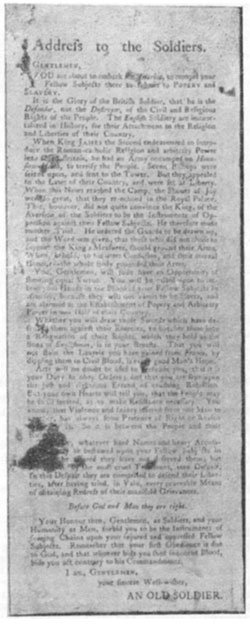 Рис. 7. Пример секретной американской подрывной пропаганды против английских войск. Читатели, знакомые с содержанием романа Чарльза Диккенса „Барнеби Радж", помнят, что борьба с католицизмом была одной из острых пропагандистских тем в Англии во время американской революции. В данном случае американская пропаганда не касается независимости Америки — вопроса, по которому англичане придерживались единого мнения, а пытается вызвать раскол в английских войсках, используя антикатолические призывы. (Источник листовки неизвестен. Приводимый образец взят из архива военного министерства. Документ, по-видимому, относится к 1775 году.) [40] Агитационная деятельность французских революционеров. Использование в прошлом ракет и воздушных шаров для достижения психологического эффекта. Начало печатания и распространения листовок как одного из средств, дополняющих боевые операции.