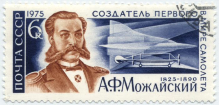 Можайский Александр Фёдорович [9(21).3. 1825, Роченсальм, ныне Котка, Финляндия,— 20.3(1.4).1890, Петербург], русский исследователь и изобретатель в области создания летательных аппаратов (ЛА) тяжелее воздуха, контр-адмирал (1886). В 1841 году окончил Морской кадетский корпус. В 1841—1862 и 1879—1882 годы служил в военно-морском флоте, в 1862—1879 годы — в гражданских ведомствах. С 1856 года Можайский начал исследовать возможность создания ЛА тяжелее воздуха и посвятил этой цели всю дальнейшую жизнь. Круг его научных интересов в этой области был весьма обширен: он всесторонне изучал строение крыльев птиц, их способность к парящему полёту, исследовал работу воздушных винтов, динамику полёта, одновременно строил модели ЛА. В отличие от многих изобретателей того времени, пытавшихся строить ЛА с машущими крыльями, Можайский твёрдо стал на путь создания машины с неподвижным относительно корпуса крылом. В 1876 году с успехом публично демонстрировал полёты своих моделей. 3 ноября 1881 года (по заявке от 4 июня 1880) получил первую в России привилегию на изобретённый им «воздухолетательный снаряд» (самолёт). В том же году начал постройку самолёта с двумя паровыми двигателями мощностью 20 и 10 л. с. (ок. 15 и 7,5 кВт соответственно) на военном поле в Красном Селе под Петербургом. Постройка самолёта в основном была завершена летом 1882 года. Официальные документы о полёте на этом самолёте не сохранились, но известно, что с 1882 по 1885 годы Можайский ежегодно получал разрешения штаба войск гвардии и Петербургского военного округа на проведение опытов со своим «воздухолетательным снарядом». Описания, относящиеся к 1909 и более позднему времени, свидетельствуют о том, что попытка полётов окончилась неудачно. ЛА тяжелее воздуха, созданный Можайским, его деятельность первоначинателя в области авиации представляют большой интерес для истории как одна из первых попыток создать самолёт, пилотируемый человеком. Использованы материалы Советской военной энциклопедии в 8-ми томах, том 5.