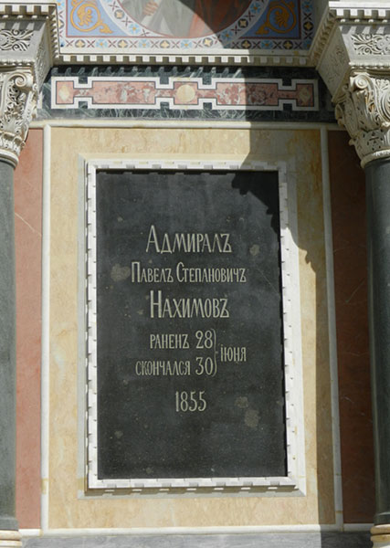 Памятник П.С. Нахимову в Севастополе. Подавал пример храбрости и выдержкиНахимов Павел Степанович (23.VI(5.VII).1802 - 30.VI(12.VII).1855) - русский флотоводец, адмирал (1855). Родился в селе Городок Вяземского уезда Смоленской губернии в семье отставного секунд-майора. В 1815 году поступил в Морской кадетский корпус, по окончании которого (1818) служил на Балтийском флоте. В 1822-1825 годы совершил кругосветное плавание на фрегате «Крейсер». Участвовал в Наваринском сражении 1827 года на корабле «Азов». В русско-турецкой войне 1828-1829 годов, командуя корветом, участвовал в блокаде Дарданелл. По возвращении в Кронштадт командовал фрегатом «Паллада». С 1834 года - на Черноморском флоте - командир линейного корабля «Силистрия». В 40-х годах совершал крейсерства у кавказского побережья, участвовал в высадке десантов и укреплении Черноморской береговой линии. В 1845 году произведен в контр-адмиралы и назначен командиром бригады кораблей, с 1852 года - вице-адмирал, начальник флотской дивизии. Нахимов много сделал для повышения боеспособности флота. Корабли под его командованием отличались безупречной организацией службы и высокой боевой подготовкой экипажей. Ближайший сподвижник М. П. Лазарева, Нахимов был признанным авторитетом в различных областях военно-морского дела, талантливым воспитателем моряков. Вера в высокие моральные качества русского матроса, забота о нем, протест против крепостнических порядков на флоте, умение найти наиболее рациональные формы и методы боевой подготовки принесли Нахимову большую популярность на Черноморском флоте. Флотоводческое искусство Нахимова раскрылось в Крымской войне 1853-1856 годов. Эскадра под командованием Нахимова вышла из Севастополя для поиска и уничтожения турецкого флота. После длительного крейсерства у анатолийского побережья Нахимов обнаружил в Синопе турецкую эскадру, готовившуюся к нападению на Кавказ, заблокировал ее и уничтожил 18 (30) ноября в Синопском сражении 1853 года. Затем вместе с адмиралом В. А. Корниловым возглавил подготовку к борьбе с англо-французским флотом, вошедшим в Черное море. Правильно оценивая стратегическое значение Севастополя, Нахимов использовал все имеющиеся силы и средства для усиления его обороны. Официально занимая должность командующего эскадрой, а с февраля 1855 года - командира Севастопольского порта и военного губернатора, фактически с самого начала возглавлял героический гарнизон Севастополя, проявив выдающиеся способности в организации его обороны. Нахимов осуществил важнейшие мероприятия по укреплению оборонительной линии, формированию морских батальонов, строительству батарей, созданию резервов и т. п., руководил боевыми действиями по отражению атак противника на главных направлениях, уделял повседневное внимание организации взаимодействия сухопутных и морских сил, эффективному использованию артиллерии, медицине и тыловому обеспечению. Пользовался огромным авторитетом и доверием защитников города, подавая пример храбрости и выдержки. 28 июня во время объезда передовых укреплений был смертельно ранен на Малаховом кургане. Похоронен в Севастополе во Владимирском соборе рядом с М.П. Лазаревым, В.А. Корниловым и В. И. Истоминым.