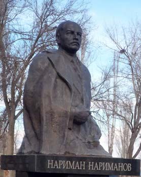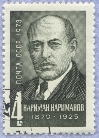 Памятник Н. Нариманову в г. Нариманов (Астраханская область). Нариманов Нариман Кербалай Наджаф-оглы (2(14).IV.1870 - 19.III.1925) - советский государственный и партийный деятель, писатель и публицист. Член Коммунистической партии с 1905 года. Родился в Тифлисе в семье мелкого торговца. Окончил в 1890 году Горийскую учительскую семинарию и медицинский факультет Новороссийского (Одесского) университета в 1908 году. Работал учителем, затем врачом. Создатель первой в Азербайджане народной библиотеки-читальни с литературой на родном языке, автор учебников азербайджанского и русского языков, переводчик комедии Н. В. Гоголя «Ревизор». В драме «Надир-Шах» (1899), романе «Бахадур и Сона» (1896-1900), повести «Пир» (1913) и других отстаивал идеи демократизма, дружбы и братства народов, бичевал патриархальные нравы, религиозный фанатизм. В 1905 году вступил в социал-демократическую организацию «Гуммет», активно участвовал в революции 1905-1907 годов, выступая со статьями, фельетонами в социал-демократической прессе. Нариманов перевел на азербайджанский язык Программу РСДРП. В 1909 году был арестован и выслан на 5 лет в Астрахань. В 1917 году был избран председателем комитета «Гуммет» и членом большевистского Бакинского комитета РСДРП(б); был также редактором газеты «Гуммет». В апреле 1918 года - комиссар городского хозяйства Бакинского СНК. С 1919 года заведовал Ближневосточным отделом НКИД РСФСР, затем был заместителем наркома по делам национальностей. С апреля 1920 года - председатель Временного революционного комитета и с 1921 года - председатель СНК Азербайджана. Являлся членом советской делегации на Генуэзской международной конференции. С декабря 1922 года - один из председателей ЦИК СССР. Был членом Кавказского бюро ЦК РКП(б), Закавказского краевого комитета партии, Президиума ЦК компартии Азербайджана. На XII съезде РКП(б) избран кандидатом в члены ЦК РКП(б). Похоронен в Москве на Красной площади. Ю. Н. Амиантов. Москва. Советская историческая энциклопедия. В 16 томах. — М.: Советская энциклопедия. 1973—1982. Том 9. МАЛЬТА - НАХИМОВ. 1966. Нариман Кербалай Наджаф оглы Нариманов (1870-1925) родился в Тифлисе в семье мелкого торговца. Окончил Горийскую учительскую семинарию, работал учителем в Тифлисской губернии. С 1902 г. учился на медицинском факультете Новороссийского (Одесского) университета. В 1905 г. вступил в организацию «Гуммет», сформированную при Бакинском комитете РСДРП специально для антиправительственной пропаганды среди мусульманского населения Кавказа. Во время революции 1905 г. выступал с подрывными речами, перевел Программу РСДРП на азербайджанский язык. В 1909 г. был арестован и выслан в Астраханский край сроком на 5 лет. В 1917 г. Нариманова избирают председателем «Гуммета» и членом Бакинского комитета РСДРП(б). Летом 1919 г. он назначен заведующим ближневосточным отделом Наркомата иностранных дел, а потом заместителем наркома по делам национальностей. Наркомом в то время был Сталин; его правой рукой в проведении «ленинской национальной политики» и стал Нариманов. С 1920 г. он возглавил ревком Азербайджана и от имени «Азербайджанской советской независимой республики» заключил союз с правительством советской России. За свою промосковскую позицию наримановский Азербайджан получал щедрую помощь - и дефицитными товарами, и деньгами. Только в апреле 1920 г. Ленин выделил ему из нищей росс