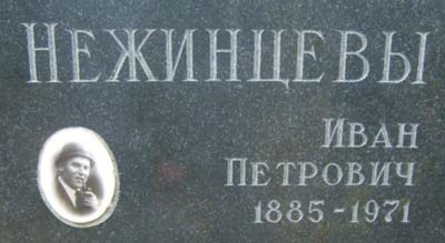Фрагмент надгробного памятника. Ниже на том же памятнике выбиты также имена Нежинцевой Любови Рудольфовны (1928-1992) и Нежинцева Андрея Ивановича (1921-2000). Последний - на памятнике он в советской военной форме - вероятно, сын Ивана Петровича. Информацию о годе смерти Нежинцева прислала читательница ХРОНОСа Ирина со ссылкой на сайт http://www.vagankovo.pogost.info/ Далее читайте:Эсеры (социалисты-революционеры). Члены Всероссийского Учредительного Собрания (биографический указатель). Комитет Членов Учредительного собрания (КОМУЧ) - правительство, созданное в Самаре 8 июня 1918 г. В.Б. Румянцев. Россия, которой не стало, потому что никогда не было. К очередной годовщине разгона Учредительного собрания. Источники и литература по истории Всероссийского учредительного собрания. Сокращения (в том числе краткая расшифровка аббревиатур).