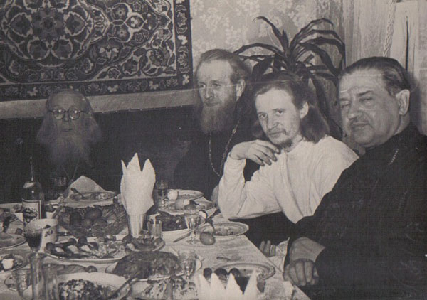 Слева направо: о. Василий, неизв., протодьякон Семион (стоит), архиепископ