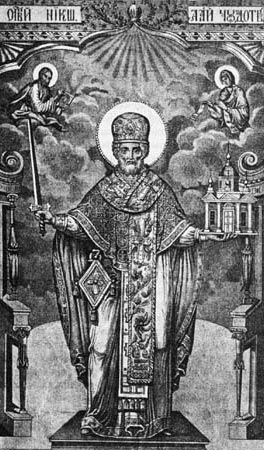 Николай Мирликийский (Николай Чудотворец), епископ г. Миры в Ликии Малоазийской, святитель (к. III — 1-я пол. IV в.), один из самых почитаемых святых во всем христианском мире и прежде всего в России. Образ святого сыграл большую роль в развитии мировоззрения Святой Руси. Еще при жизни свт. Николай прославился многими подвигами во славу Христову и чудесами. Поэтому день его погребения — 6 (19) дек. — стал общехристианским праздником. На Руси этот день стали прозывать Никола зимний. Но еще больше чудес от свт. Николая стало случаться после его смерти. Его покровительство распространялось прежде всего на плавающих и путешествующих, на «всех сирых и убогих», на скотоводство и земледелие, считался он также и «хранителем земных вод». В православной традиции свт. Николай получил еще 2 прозвания — Николай Чудотворец и Николай Угодник. Свт. Николаю посвящено большое число различных сочинений, авторами которых стали как известные православные писатели и деятели церкви (Антоний Критский, Кирилл Философ, Климент Охридский и др.), так и простые священники. В Х в. византийский агиограф Симеон Метафраст на основе многих древних латинских и греческих источников написал «Житие св. Николая Мирликийского» (на русском языке известно в рукописях начиная с XV в.). На Руси имя Николая Чудотворца получает известность довольно рано. В Киевском Софийском соборе (сер. XI в.) в числе наиболее почитаемых святых присутствует и мозаичное изображение свт. Николая. Особенное почитание этого святого в пределах Руси начинается со 2-й пол. XI столетия. Связано это было с несколькими причинами. В 1087 мощи святого были украдены из г. Миры норманнами и перевезены в итальянский г. Бари. В город норманны вступили 9 (22) мая. С тех времен этот день стал считаться вторым праздником в честь знаменитого святого. С 1089 и поныне они хранятся в специально построенном во имя св. Николая католическом соборе. Русь очень быстро откликнулась на это событие созданием литературного памятника — «Сказание повести, еже о пренесении честных мощей иже во святых отца нашего Николы архиепископа града Миры». Правда, в нем ничего не говорится о факте именно воровства мощей, что само по себе очень характерно, — в этом явно прослеживаются какие-то западные влияния на автора «Сказания». Более того, само «Сказание» придает событиям, случившимися с мощами Николая Мирликийского, чудесное объяснение. В нем подробно рассказывалось о том, как пресвитеру г. Бари явился свт. Николай и повелел отправиться в разоренный к тому времени г. Миры и взять его мощи. Жители Бари, притворяясь купцами, отправились в Миры, и нашли там раку с мощами святого, заполненную благовонным миром, которую привезли в Бари. На родную землю они вступили 9 (23) мая, и сразу же возле мощей сотворилось множество чудес. С тех времен этот день стал считаться вторым праздником в честь знаменитого святого. Кроме того, в те же годы письменными источниками впервые зафиксировано чудо от свт. Николая, явленное в Киеве. Это первое чудесное явление святителя на Руси описывается в памятнике, получившем название «Чудо о некоем детищи утопшем, его же святый Никола жива сохрани». В нем рассказывается, как в день празднования свв. Бориса и Глеба, плывя в лодке через Днепр из Вышгорода в Киев, жена одного богатого киевлянина уронила ребенка в реку, который немедленно 