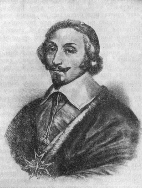 Ришелье (Richelieu) Арман Жан дю Плесси (du Plessis) (5. 9. 1585, Париж, — 4.12. 1642, там же), французский государственный деятель, сторонник абсолютизма, кардинал (с 1622 года). Был удостоен титула генералиссимуса. С 1607 года стал епископом в Лусоне (в Пуату). В 1614 году был избран членом Генеральных штатов от духовенства, что способствовало его политической карьере. В 1616—1624 годы государственный секретарь по военным и иностранным делам. С 1624 по 1642 годы, будучи первым министром Людовика XIII, являлся фактическим правителем Франции. Политика Ришелье была направлена на укрепление абсолютизма и международного положения Франции. В интересах внешней экспансии была проведена реорганизация армии, создан военный флот, что способствовало победе Франции в Тридцатилетней войне 1618—1648 годов. Ришелье стремился расширить французские колонии в Северной Америке (Канаде), на Антильских островах, в Сан-Доминго, Сенегале, на Мадагаскаре. Стремясь усилить королевскую власть, проводил решит, борьбу с сепаратистскими группировками, особенно с гугенотами. По его указанию были срыты дворянские замки (за исключением пограничных). Сторонник абсолютизма, Ришелье жестоко подавлял многочисленные народные восстания. При Ришелье были основаны французская академия, ряд лицеев, реорганизована Сорбонна. В своём «Политическом завещании» изложил основные принципы политики французского абсолютизма. Использованы материалы Советской военной энциклопедии в 8-и томах, т. 7: Радиоконтроль – Тачанка. 688 с., 1979.