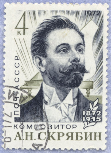 Скрябин Александр Николаевич (1871 — 1915) — российский деятель культуры, композитор, пианист и педагог. В 1890-х гг. выступал с концертами в ряде городов России и в странах Западной Европы, исполняя свои и чужие произведения. В 1898—1903 гг. — профессор Московской консерватории по классу фортепиано. В 1904—1909 гг. жил в Швейцарии, Франции и Италии, совмещая творческую работы с гастролями по Европе и Америке. С 1910 г. поселился в Москве, выезжал с авторскими концертами в Нидерланды (1912) и Великобританию (1914). Игра пианиста отличалась исключительной одухотворенностью, тонкой нюансировкой и виртуозной техникой. Как композитор создал свой звуковой мир, свою систему образов и выразительных средств. Под влиянием стиля модерн стремился объединить все виды искусства, синтезировать художественные средства, что проявилось в его симфониях и симфонических поэмах — «Поэмаэкстаза» (1907), «Прометей» («Поэмаогня», 1910). При исполнении последней увеличил состав оркестра, введя орган, колокола, хор без слов и специальную партию света. Среди фортепианных произведений центральное место занимали одночастные 6—10-я сонаты (1911 — 1913), частичное воплощение грандиозного замысла — «Мистерии» — некоего художественно-литургического действа с участием разных видов искусства. Орлов А.С., Георгиева Н.Г., Георгиев В.А. Исторический словарь. 2-е изд. М., 2012, с. 470.