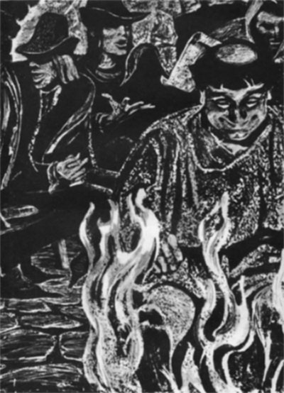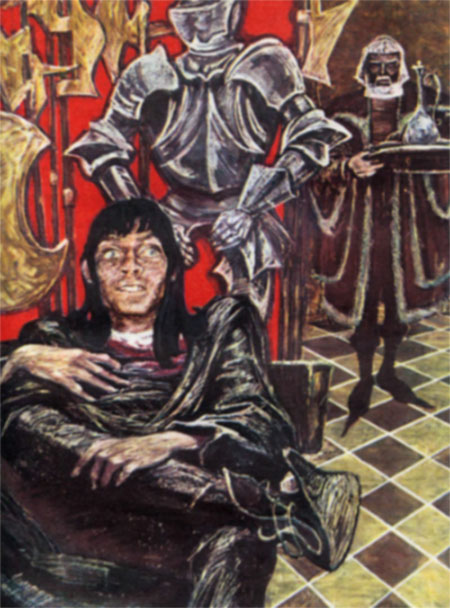 Иллюстрация к рассказу «Ночлег Франсуа Вийона». Радость, обретаемая в муках творчества, дар слова и воображения, рано определившееся призвание, потребность самоутверждения давно побуждали Стивенсона выйти за круг литературных статей и очерков. В октябре 1877 года (в журнале «Темпл Бар») появилось первое его художественное произведение — рассказ «Ночлег Франсуа Вийона». Это сюжетное осмысление личности выдающегося французского поэта XV века еще связано с литературно-критическим опытом Стивенсона и подсказано им. Наряду с рассказом он пишет статью «Франсуа Вийон, ученый, поэт и взломщик». И все же «Ночлег» — уже выход в иную область творческой деятельности. Стивенсона занимали характер и судьба Вийона: талантливейший поэт — и в то же время бродяга, пропойца и вор; человек свободомыслящий и на свой лад рыцарь чести, у которого, говоря словами Шекспира, «душа добра во зле», и вместе с тем — пример внутренней расшатанности, образец нравственной аморфности. Франсуа Вийону противостоит старик Энгерран де ла Фейе, рыцарь без страха и упрека в буквальном и переносном смысле. Сталкивая характеры, Стивенсон не спешит с выводом и вовсе избегает назидания. Он готов и хочет подчиниться неумолимой логике объективного анализа. Вместе с Вийоном автор называет Энгеррана де ла Фейе «чудесным стариканом». Ему нравятся прямота его характера, цельность чувств, широта гуманного жеста. Ему приятно слышать из его уст, как решительно отвергает он принцип наживы, противопоставляя ему принцип чести. И тут же, пробивая его обветшалые рыцарские доспехи, он острием слова колет уязвимые места нравственной модели, слепленной феодальной Европой. Отдавая должное душевной силе и обаянию старого рыцаря, он неспроста замечает, что его «прекрасное лицо, скорее почтенное, чем умное», и что стройная система его принципов далеко отлетела от реальности. Вместе с Энгерраном де ла Фейе Стивенсон, одолеваемый какой-то неисповедимой симпатией, вглядывается в поэта, стараясь понять, как это в нем столь причудливо смешались добро и зло. В отличие от старика Стивенсону нравится, что Вийон чужд этического ригоризма, что в нем живет творческий дух, и потребность свободы, и жажда самостоятельной оценки истины, и не утрачена честь. Когда же в конце рассказа Энгеррану де ла Фейе становится не по себе в присутствии Вийона, ему «тошно видеть его», а поэт, не сомневаясь в порядочности сеньора, все же не может уверовать в его ум и на этот раз называет его «нудным стариком», то очень похоже, что автор равно разделяет их чувства и мнения. Однако в отличие от средневекового рыцаря писатель новейшего времени, пристально вглядываясь в причудливый облик поэта, видит в нем проявление самобытной артистической натуры и гротескных условий жизни. Бродяга Вийон и зимний Париж 1456 года, описанные с проникновенной [16] выразительностью, хорошо передают и мысль и настроение Стивенсона, проникающего в трагическую судьбу необычайно талантливой личности переходного времени. Несмотря, казалось бы, на замкнутость литературной темы и неразвернутость ее трактовки в малом жанре, рассказ «Ночлег Франсуа Вийона» и его герой тогда же вызвали живой читательский интерес.