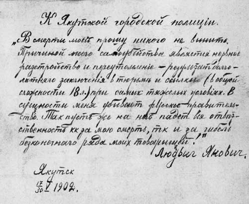 Предсмертная записка Яновича. Сочинения:Шлиссельбуржец Л. Ф. Янович, СПБ, 1907; Воспоминания узника Шлиссель" бургской крепости, "Вопросы истории". 1966, № 8. Литература:Очерки революционных связей народов России и Польши, М., 1976. Далее читайте:| АБ | БА | ВА | ГА | ДА | ЕА | ЖА | ЗА | ИА | КА | ЛА | МА | НА | ОА | ПА | РА | СА | ТА | УА | ФА | ХА | ЦА | ЧА | Ш-ЩА | ЭА | ЮА | ЯА | Народная воля, революционно-народническая организация, образовалась в августе 1879 г. Земля и воля, тайное революционное общество, существовало в 1870-е гг. Петрашевцы, участники кружка М. В. Петрашевского (1827-1866). М. Ольминский. Смерть Л.Ф. Яновича. "Былое", декабрь 1906 г.