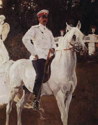 В.А Серов . Портрет князя Ф.Ф. Юсупова. 1903. Юсупов Феликс Феликсович (старший), князь, граф Сумароков-Эльстон, генерал-адъютант, генерал-лейтенант, командир Кавалергардского Императрицы Марии Федоровны полка, главный начальник Московского военного округа (май-июнь 1915г.), главноначальствующий г. Москвы (май-сентябрь 1915 г.). + + + Юсупов Феликс Феликсович, граф Сумароков-Эльстон (старший) (1856-1928), князь— в 1904—1908 гг.— командир Кавалергардского полка; в 1908— 1911 гг. — командир 2-й гвардейской кавалерийской дивизии; с 17 мая 1915 г. — главный начальник Московского военного округа и главноначальствующий г. Москвы.Использованы материалы кн.:"Охранка". Воспоминания руководителей политического сыска. Тома 1 и 2, М., Новое литературное обозрение, 2004. Юсупов (граф Сумароков-Эльстон) Феликс Феликсович (1856-1928), генерал-майор, князь. Учился в Пажеском корпусе, сдал офицерский экзамен при Чугуевском пехотном юнкерском училище. Командовал Кавалергардским полком, 2-й бригадой 2-й гвардейской кавалерийской дивизии. В 1915-16 гг. — начальник Московского ВО. В Италии с 1917 г. Шмаглит Р.Г. Белое движение. 900 биографий крупнейших представителей русского военного зарубежья. М., 2006, с. 308. Юсупов Феликс Феликсович (1856 -1928), князь, граф Сумароков-Эльстон, русский генерал-лейтенант (1915), генерал-адъютант (1915). Его отец – Феликс Эльстон (он был внебрачным сыном германского императора Вильгельма I, женился на единственной дочери графа Сумарокова и получил право именоваться графом Сумароковым-Эльстоном). Учился в Пажеском корпусе (не окончил), в 1876 выдержал офицерский экзамен при Чугуевском пехотном юнкерском училище. В 1876 выпущен в Одесский уланский полк; в 1879 прикомандирован к Кавалергардскому полку. В 1882 женился на последней в роде княжне Зинаиде Николаевне Юсуповой; в 1891 ему было разрешено носить титул и фамилию жены (в дальнейшем титул князя Юсупова мог наследовать только старший сын). В 1883 – 1885 причислен к Министерству внутренних дел. С 1886 адъютант великого князя Сергея Александровича. С 1904 командир Кавалергардского полка, в 1908–1911 – 2-й бригады 2-й гвардейской кавказской дивизии. С 1912 председатель совета Императорского Строгановского центра Художественно-промышленного училища. С 1915 главный начальник Московского ВО и главноначальствующий над Москвой. 19 июня 1915 был освобожден от должности главного начальника, а 3. 9. 1915 – от должности главноначальствующего. После Октябрьской революции уехал в Крым, а в 1919 покинул Россию. Его сын: Феликс Феликсович Юсупов (1887–1967) был одним из участников убийства Г. Е. Распутина. Использованы материалы Примечания Александра Репникова к Дневникам за 1915 г. Льва Тихомирова. Юсупов Феликс Феликсович (5.10.1856, Петербург -10.6.1928, Рим, Италия), князь, граф Сумароков-Эльстон, рус. генерал-лейтенант (6.5.1915), генерал-адъютант (6.5.1915). Его отец - Феликс Эльстон (он был внебрачным сыном герм. императора Вильгельма I и женился на единственной дочери графа Сумарокова) получил право именоваться графом Сумароковым-Эльстоном. Учился в Пажеском корпусе (не окончил), в 1876 выдержал офицерский экзамен при Чугуевском пех. юнкерском училище. В 1876 выпущен в Одесский уланский полк; в 1879 прикомандирован к Кавалергардскому полку. В 1882 женился на последней в роде княжне Зинаиде Николаевне Юсуповой; в 1891 ему было разрешено носить титул и фамилию жены (в дальнейшем титул князя Юсупова мо