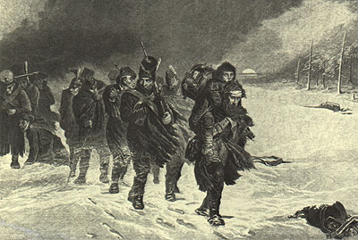 До 14 декабря Шварценберг находился в Слониме, пребывая в полной неизвестности относительно истинного положения вещей, так как одержанная согласно сообщению Наполеона победа у Березины давала ему основание ожидать, что Чичагов, находящийся в полном отступлении, должен появиться в ближайшее время. Убедившись, наконец, в истинном положении вещей, он начал 14-го свое отступление на Белосток, а там под влиянием угрозы его левому флангу со стороны Гродно он в конце декабря стал отступать на Остроленку, в то время как Ренье, преследуемый Сакеном, отошел на Венгров. Так окончился поход 1812 г. Когда остатки французской армии собрались в течение января месяца за Вислой, оказалось, что они насчитывают 23 000 человек. Австрийские и прусские войска, вернувшиеся из похода, насчитывали приблизительно 35 000 человек, следовательно, все вместо составляли 58 000 человек. Между тем созданная армия, включая сюда и подошедшие впоследствии войска, насчитывала фактически 610 000 человек[1]. Таким образом, в России осталось убитыми и пленными 552 000 человек. При армии находилось 182 000 лошадей. Из них, считая прусские и австрийские войска и войска Макдональда и Ренье, уцелело 15 000, следовательно, потеряно было 167 000. В армии было 1 372 орудия: австрийцы, пруссаки, Макдональд и Ренье привезли с собою обратно до 150 пушек, следовательно, было потеряно свыше 1 200 орудий.