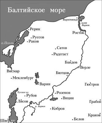 Современная карта Варяжского Поморья (земля Мекленбург). Русы в одних случаях отождествляются с варягами, но в других являются явно иным племенем. Сложность в данном случае заключается в том, что в одной Прибалтике существовало несколько «Руссий», которые восходили к разным истокам. В историографии существует также оригинальная гипотеза о руси и варягах, как о профессионально-социальных терминах. С.А. Гринёв полагал, что русы были военно-конным сословием славян. Он считал, что само название Русь дали этим всадникам готы, немного исказив слово «конь». Отсюда произошли наименования «Russ», «Reuter» и позднее «Ritter». [Гринёв С.А. Была ли конница у древних руссов? — Киев, 1895. — С. 10, 16.] В то же время «варяги… были у наших славян в сущности ничем иным, как тоже войсковым сословием, но преимущественно пешим». [Там же. — С. 17.] Последнее утверждение весьма удивительно, так как варягов намного проще связывать с морскими воинами, как это сделал, например, А.К. Белов. [Белов А. Изначалие. — М., 1993. — С. 9.] Немногим позднее профессор В.А. Брим озвучивал подобную версию, но с принципиально иной расстановкой акцентов. Он считал, что слово «Русь» скандинавское и в переводе обозначает «дружина». [Брим В.А. Происхождение термина «Русь» // Россия и Запад. Исторический сборник. 1923. № 1. — С. 5-10.] Но такая трактовка ничего не проясняет, хотя уже давно подмечено, что термин «Русь», вероятно, близок по значению к военной тематике. Если и допустить, что в этимологической основе названия Русь лежит воинская терминология и оно близко к обозначениям различных оттенков красного цвета (традиционного для воинства), то почему оно не могло обозначать воинственный род, претендовавший на власть и могущество. Алые паруса кораблей, красные плащи и щиты, дорогие мечи — отличительные признаки внешнего облика русов, которые неоднократно упоминаются в источниках, указывая на знатность и воинственность рода. Мы будем исходить из положения о тождестве русов, ругов, рутенов (с учётом всех вариаций). Понятие «варяги» явно более узкое, чем понятие «Русь», но частично относится к последнему. Такой подход позволит нам избежать прямой подмены, когда данные, относящиеся к русам, переносят на варягов, а неславянство русов служит «доказательством» для отождествления варягов и скандинавов. Определившись в терминах, можно перейти непосредственно к анализу источников. Проблемы, которые дискутировались в немецкой историографии, базировались преимущественно на одном и том же источниковом материале, который использовали и норманисты, и их оппоненты . Меркулов В.И. Откуда родом варяжские гости? (Генеалогическая реконструкция по немецким источникам). М., 2010. Далее читайте:Всеволод Меркулов. Немецкие генеалогии как источник по варяго-русской проблеме. 24.09.2004 Всеволод Меркулов. Гюстровская ода и мекленбургская генеалогическая традиция. 24.09.2004 Повесть временных лет. Части: | 1 | 2 | 3 | 4 | 5 | Князья - потомки Рюрика (генеалогическая таблица). Рюрики. Городненские князья (генеалогическая таблица). Рюриковичи (биографический справочник). Рюрик (краткая биографическая справка). Древнерусское государство (хронологическая таблица). Карамзин Н.М. Глава IV. Рюрик, Синеус и Трувор. г. 862-879