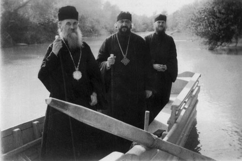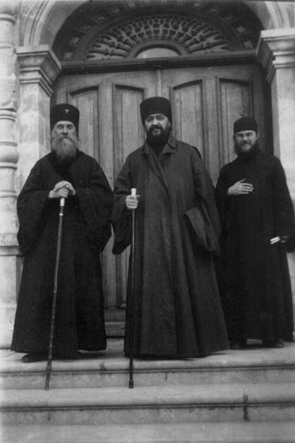 Архиепископ Анастасий, Архиепископ Нестор и игумен Нафанаил в лодке на реке Иордан Солнце мягко и ласково согревало нас, воды Иордана легкой прохладой освежили и душу и тело и казалось, что повсюду во всем мире царит та же радость, та же благодать, и свет и тепло. Казалось невозможным, что где-то есть страны, в которых в это декабрьское утро царят и холод, и мрак, и злоба, и всякие волнения. И снова душа просилась на молитву, на ту же молитву, которую привыкло повторять русское сердце у каждой святыни, у каждого храма, у каждого благословенного места - на молитву о великой истерзанной Родине, о нашем благочестивом измученном народе. На той стороне Иордана простиралась пустынная совершенно безлюдная равнина, окаймленная у горизонта полосой Моавитских гор, с которых некогда спускались дикие племена моавитян, совершавших нападения на израильскую страну. На той же стороне, ныне на сухом берегу, находится арка, отмечающая то место, где некогда от руки Иоанна Предтечи принял Крещение Христос Спаситель. Далее тянется песчаная пустыня, в которой в древние времена скрывались великие подвижники. Здесь совершала свой великий подвиг покаяния святая преподобная Мария Египетская. В такой же пустыне в горах расположена и святая великая обитель св. Саввы Освященного, несокрушимый столп иноческой жизни и до нынешнего времени. К великому нашему сожалению, недостаток времени не позволил нам посетить эту святую обитель. Но Бог дал нам радость видеть иноков из этой великой лавры и стать свидетелями того, что высочайшие образцы истинно монашеского совершенства живут и в наше время. На Рождество в Русскую Духовную Миссию в Иерусалим пришли русские иноки из лавры Св. Саввы. Один из них — брат Алексий, носитель одной из исторических русских фамилий, рясофорный инок, по своему внутреннему духовному облику был бы достоин быть руководителем духовной жизни любого монастыря нашего времени, а между тем в своей обители он был лишь новоначальным монахом, не получившим даже еще пострижения. Девять лет провел этот инок в обители св. Саввы, а там есть старцы, пребывающие в монастыре по двадцать, по тридцать лет, есть старцы поистине благодатной прозорливости. Жизнь, которую ведут иноки этой великой обители, во всем подобна жизни самых строгих, самых глубоких отшельников древних времен. Спят иноки обители св. Саввы три часа в сутки зимой и два часа летом. Ложатся через два часа после заката солнца, собираются в половине двенадцатого часа ночи на полунощницу и с этого начинается их рабочий день. Совершают строгое молитвенное иноческое правило, работают целый день на бесплодных скалах окружающих гор, нося воду из источника за полторы версты от монастыря, разрыхляя камень скал, и на нем сеют овощи, которые и употребляют в пищу. Едят только овощи, взращенные своим трудом, притом лишь однажды в день. На Пасхе разговляются только оливками. Эти высокие подвиги, это дивное, особливо в наши дни, самоотречение создает в иноках Св. Саввы такую тонкость не только духа, но и тела, что при взгляде на них,кажется, что они светятся, словно тот лучезарный пламень веры и боголюбия, который горит в их душах, просвечивает сквозь телесную оболочку. Да, есть еще на земле праведники, ради которых милует Господь наш грешный мир! Со светлым, светлым чувством духовной примиренности и благодарн