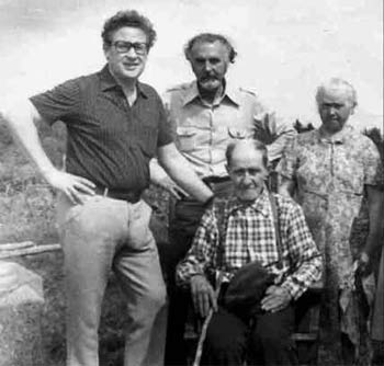 Е. Нестеренко, Н. Новиков и каревские старожилы Бардины.