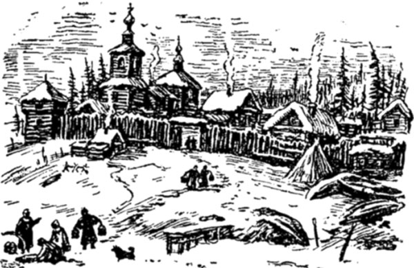 И оба вздрогнули: обоим померещилось, что нет выхода из этой открытой со всех сторон западни, что сгинут они тут и погребут их под надтреснутый звон старенького колокола, а ворон, вон тот, голодный и тощий, на перекладине креста, закружит над острогом и домиками, над тундрой и умершей подо льдом рекой Колымой. Вдруг на улицах (если только можно было назвать улицами кривые стежки, протоптанные в снегу) показались с ведрами и коромыслами девичьи фигуры. Одна за другой, вереницей, стайками заспешили они к реке, к прорубям, и было в этом движении такое оживление, что Врангель недоуменно подтолкнул локтем Матюшкина. — Скоро полдень, и девицы идут по воду,— объяснил мичман.— Это здешний обычай — наряжаются в лучшее, идут к прорубям. Парни тоже приходят. Уговариваются об вечеринках. Ну, как у нас, у колодцев. А среди девиц есть прехорошенькие,— не без лукавства добавил Матюшкин, зная некоторые слабости лейтенанта. — Хм! Амур порхает и на шестьдесят восьмом градусе северной широты,— усмехнулся Фердинанд. — И довольно резво,— поддакнул Матюшкин. Посмеиваясь и пошучивая, отрешившись от мимолетной тоски, они сошли вниз, в комнаты, где матросы уже хлопотали над обедом, в печи пылал огонь, в закопченном чайнике булькал кипяток, на столике лежали [21] свежие омули, пойманные нынешним утром в проруби и стоял штоф хлебного вина. За обедом моряки разговорились. Матюшкин ругался: местный исправник, растяпа эдакий, ничего не сделал для экспедиции, хотя его загодя предупредили о ней из Якутска. Правда, мичман успел кое-что припасти, договорился о закупке ездовых собак с казаком Антоном Татариновым, лучшим колымским собачником, а с другим казаком, искусным охотником Солдатовым, условился о поставке дичи. — Полагаю, Федор Федорович, — заметил Врангель,— что мы будем готовиться к нашим вояжам и займемся астрономическими наблюдениями. В конце января ожидаю я нашего штурмана с большим транспортом припасов. А вам надо съездить к чукчам, рассказать об нашей экспедиции, просить о помощи. На дворе смеркалось. В Нижне-Колымск возвращались охотники. Бородатые, кряжистые, в кухлянках с капюшонами, подпоясанные кушаками, на которых висели большие ножи, медные трубки с коротенькими чубуками и кисеты с огнивом и табаком, они шли устало и грузно. Одни несли рыбу, другие — «пакасть», как они называли дичь. Ледяные окна в хижинах засветились бледным светом фитильков, горевших в жировых плошках. К звездам летели из дымоходов искры. Северо-западный ветер, ветер Ледовитого океана, гасил их. Новые искры взмывали в ночь и гасли. Где-то завыла собака, потом другая, третья... Жуткий хор, в котором, несмотря на его слитность, различались низкие, средние и высокие голоса. Их тоже, как и летящие искры, подхватывал северо-западный ветер. Но искры гасли, а вой оставался. Матюшкин ушел к себе, в соседнюю избу. Матрос Михайло Нехорошков улегся на печи, блаженствуя, вспоминал такую же печь, такое же домовитое тепло в родной его Трифоногорской деревне Пинегской округи Архангельской губернии, в той деревне, что покинул он шесть лет назад, забритый на цареву службу. Врангель сидел за столом, подперев голову руками. Множество чувств теснилось в его душе, хотелось излиться в письме к Федору Литке, но он так и не взялся за перо, а вздохнув, поднялся и пошел на башню. Вышел, огляделся и застыл, пораженн